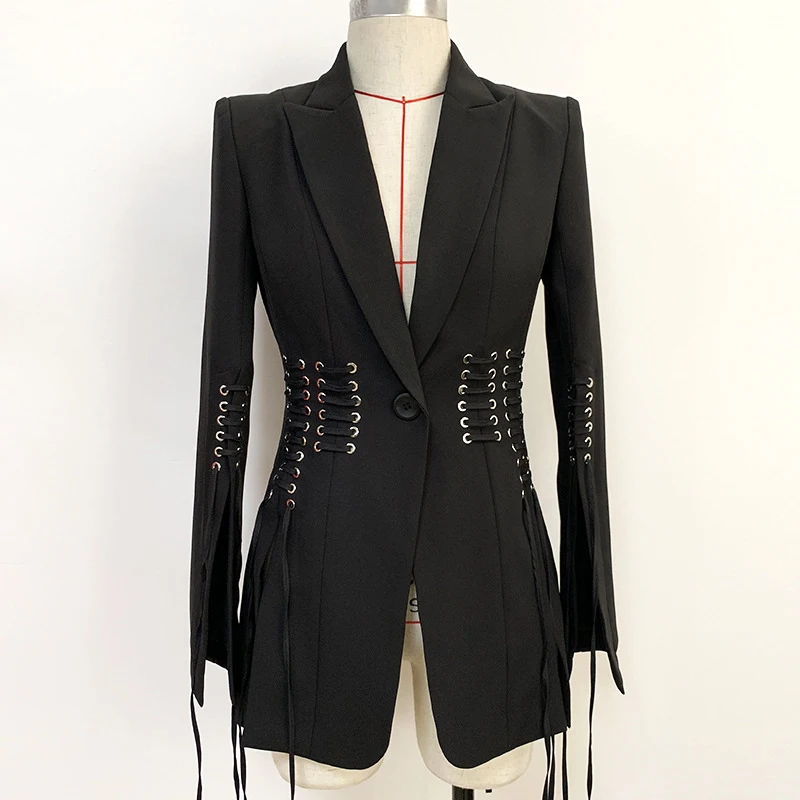 Женский блейзер на завязках, блейзер с длинным рукавом в стиле барокко, 2021