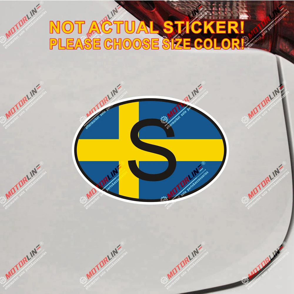 Швеция S овальная наклейка с кодом страны, Шведский флаг, виниловая Светоотражающая Глянцевая наклейка с выбором размера, высокое качество