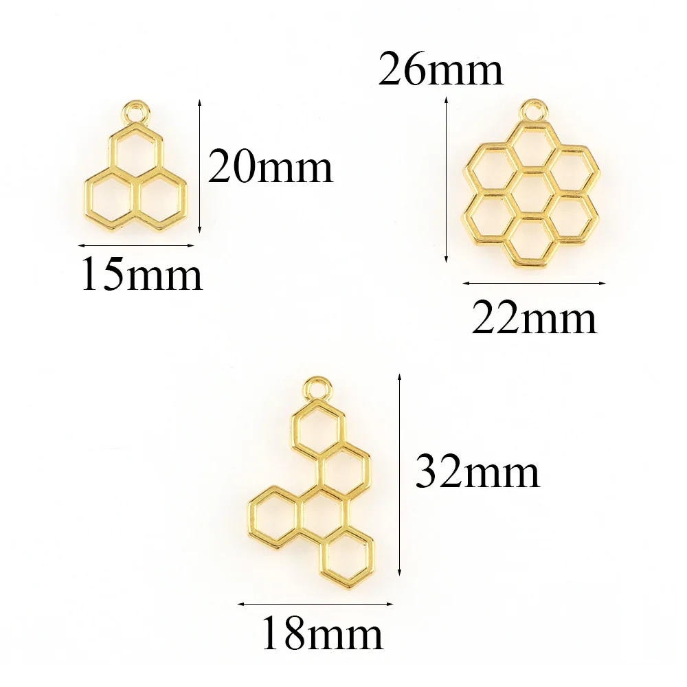 Основа для кабошона, 3 стиля, сотовая подвеска на металлическом каркасе воды, Золотая оправа для оправы, сделай сам, УФ-смола, очарование, 3 шт.компл.