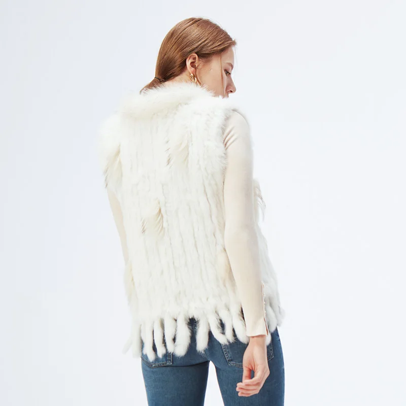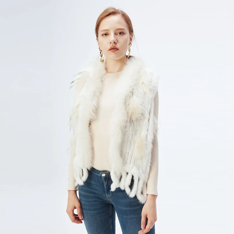 ETHEL ANDERSON женский жилет из натурального меха кролика, жилет с кисточками, пальто из натурального меха, вязаный жилет, верхняя одежда с воротником из меха енота жилетка женская теплая жилет вязаный безрукавка