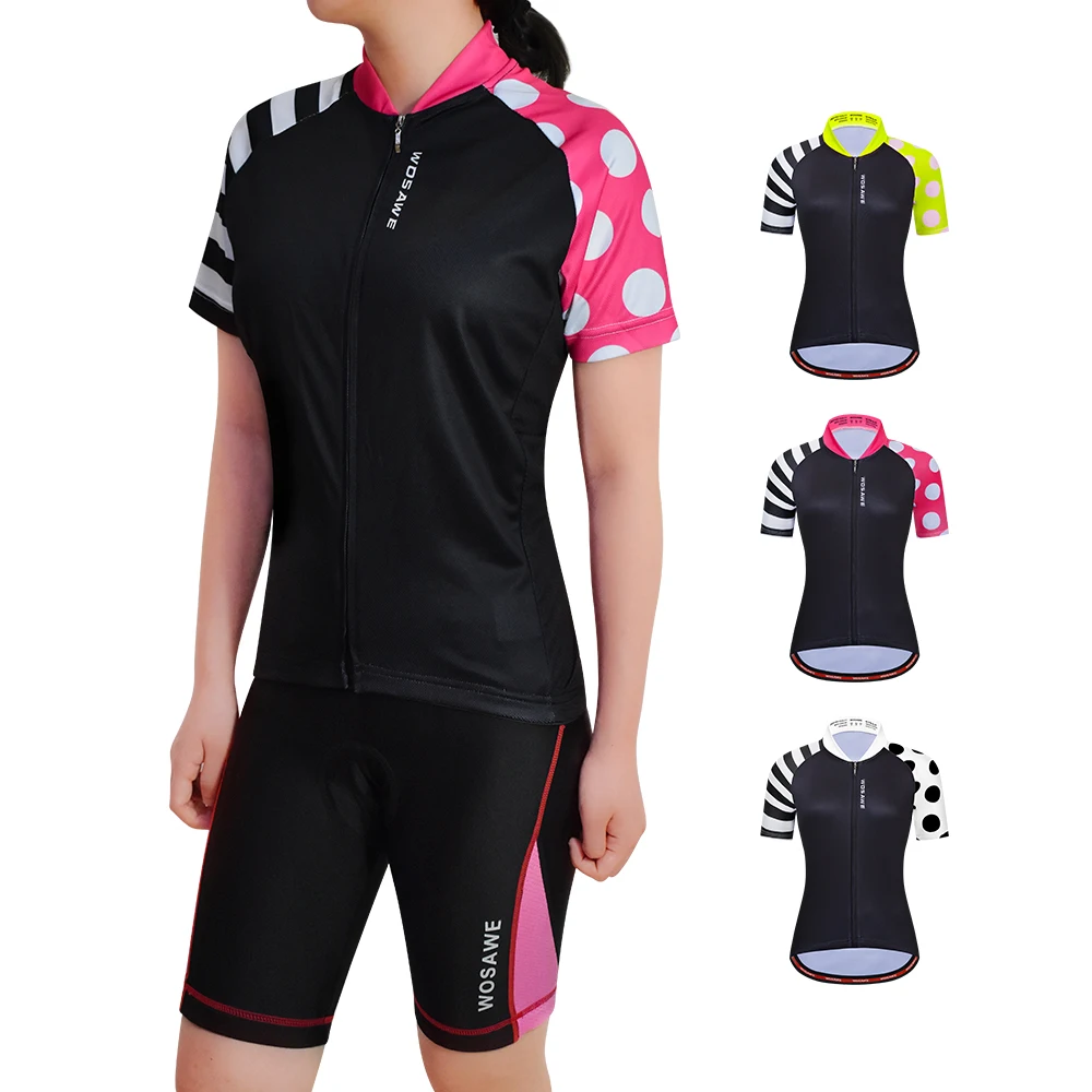 WOSAWE летний женский комплект с коротким рукавом для езды на велосипеде, трикотажный комплект с платьем, костюм для езды на горном велосипеде, мини-юбка с подкладкой, форма, одежда