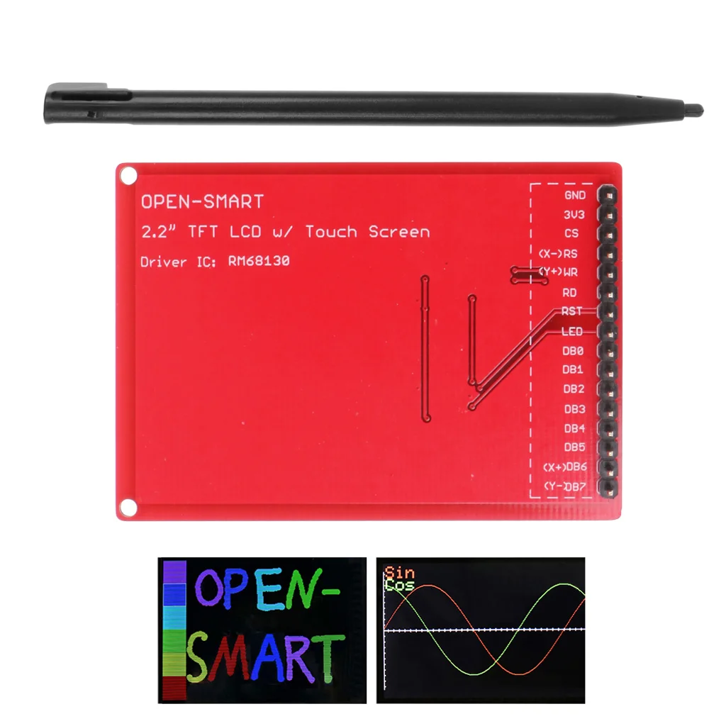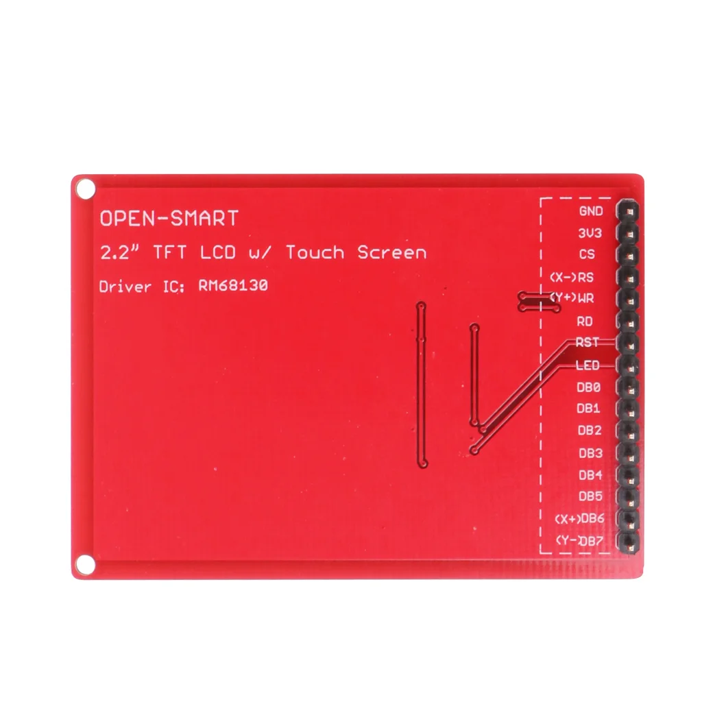 Это 2,2 дюймов TFT ЖК-дисплей плата расширения. Этот дисплей имеет встроенный в него контроллер с буферной памятью RAM, так что микроконтроллер почти не работает. Она ведет шпильки на тонкопленочных транзисторах на тонкоплёночных транзисторах и коммутационная булавки шаг 2,54 мм, таким образом, вторичной разработки составляет менее сложно.