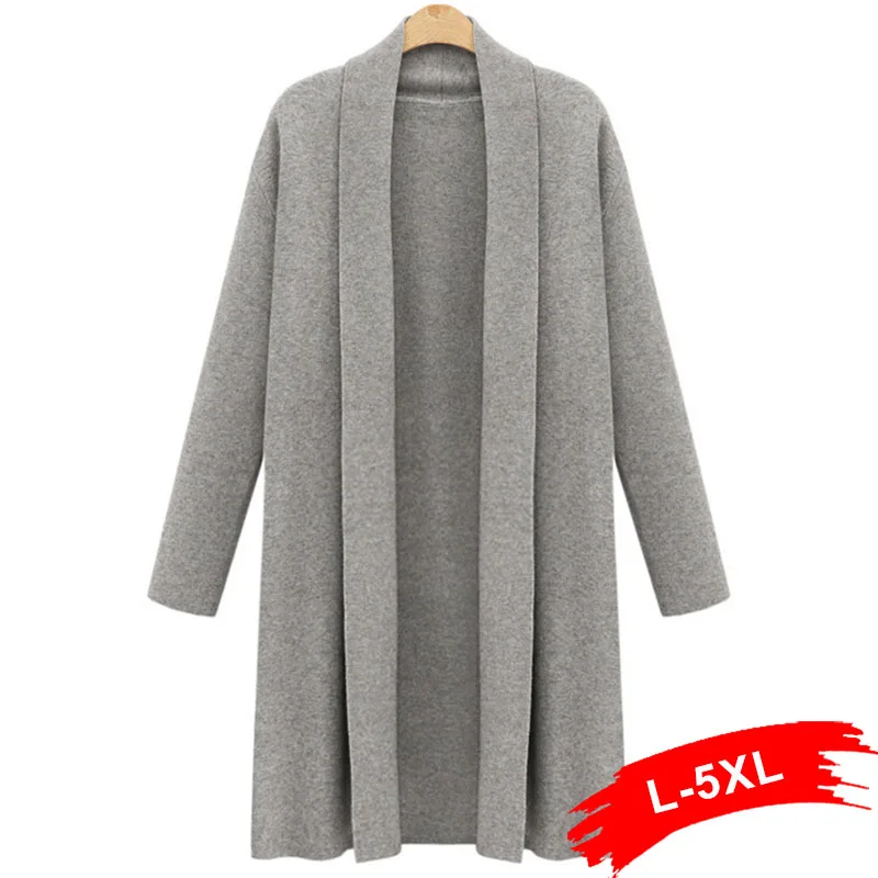 Кардиган женский трикотажный, длинный, с отложным воротником, размеры 3Xl, 4Xl, осень размера плюс