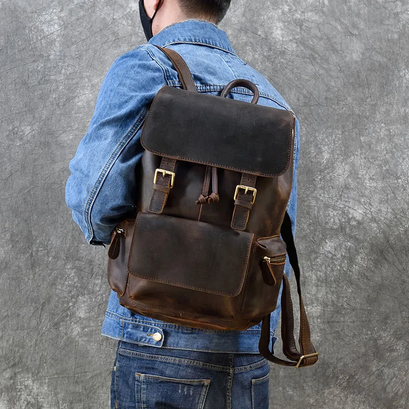 Рюкзак из натуральной кожи для мужчин и женщин Crazy Horse, винтажный женский маленький ранец из воловьей кожи для ноутбука 14 дюймов, повседневные толстые дорожные школьные ранцы