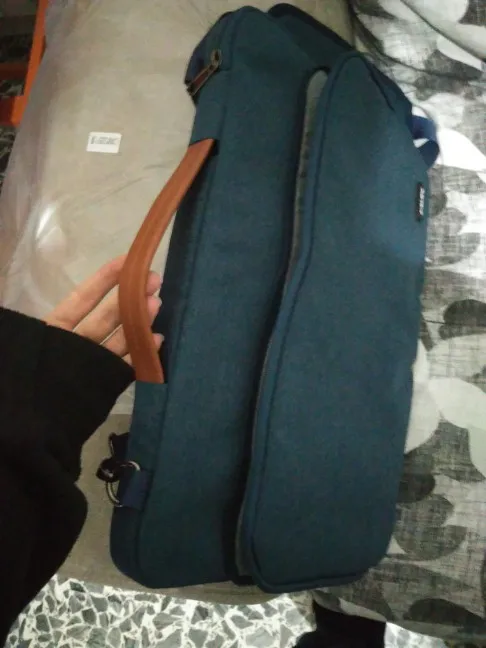 Доставка 7 дней. Выглядит стильно. большая для ультрабука, он съезжает с опор внутри сумки.