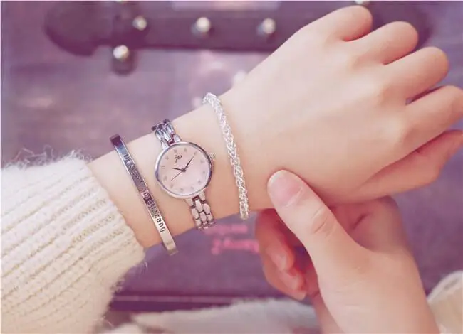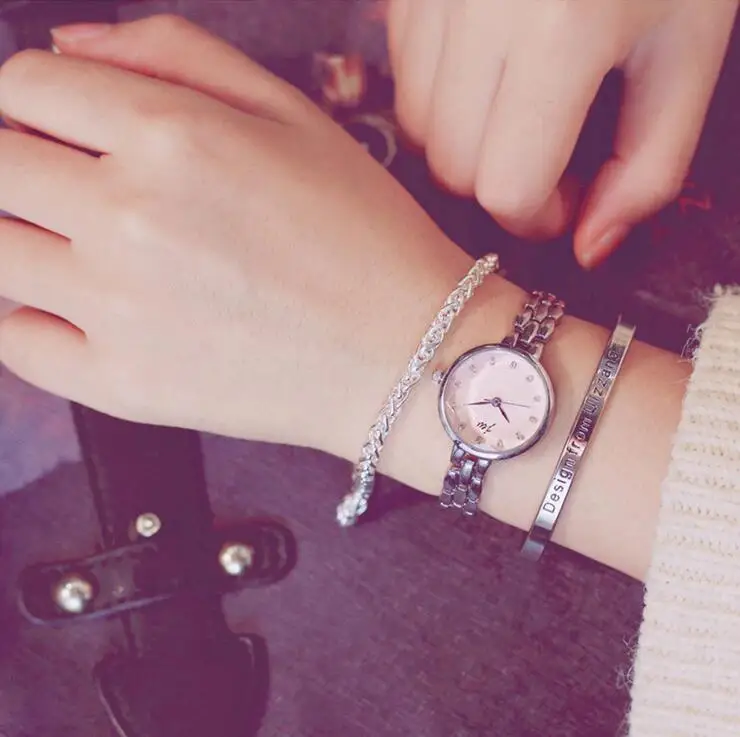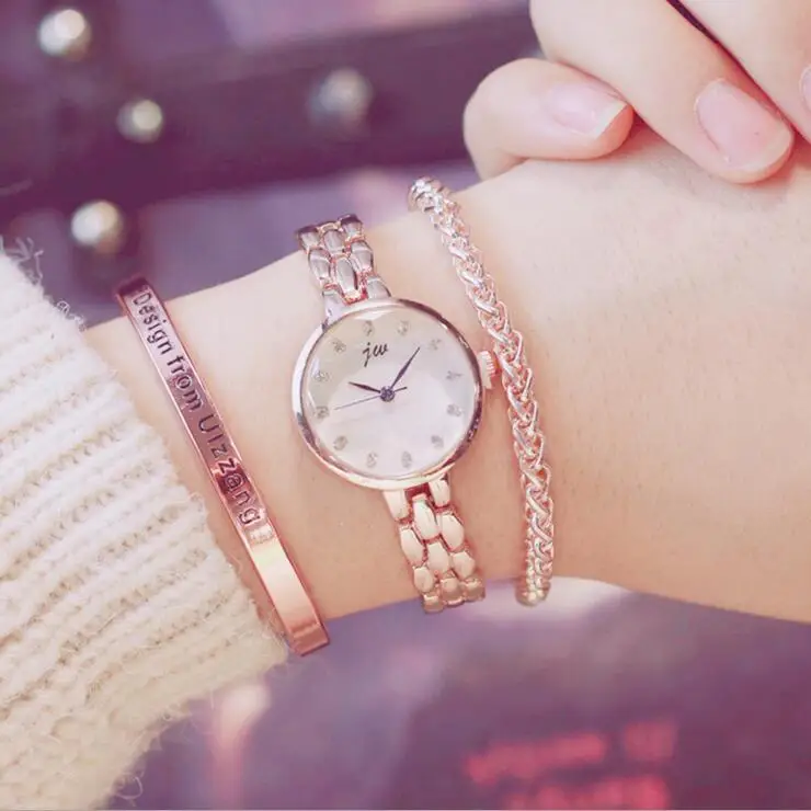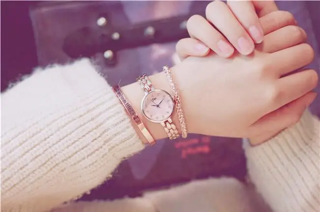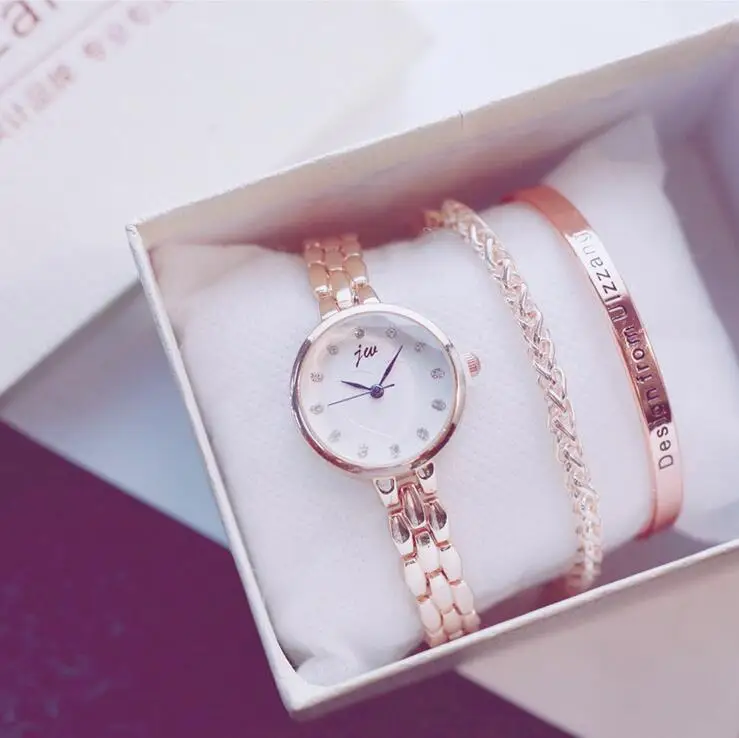 Модные повседневные женские кварцевые часы на цепочке, Женские Простые круглые часы золотого Цвета модного серебристого цвета, наборы браслетов JS1340