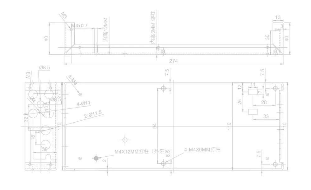 Внешние размеры: ширина = 118 мм, высота = 45 мм, глубина = 278 мм.