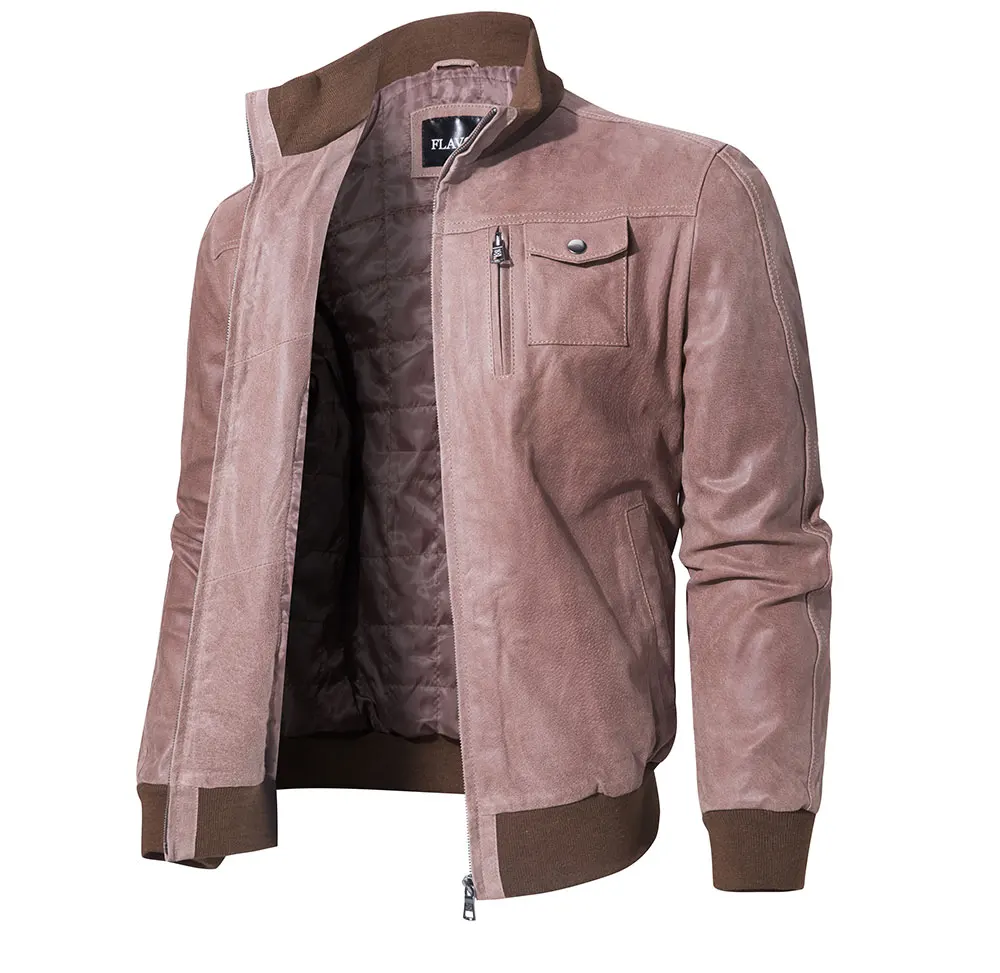 Kожаная куртка мужская из овечьей шкуры FLAVOR, облегающее бейсболь...