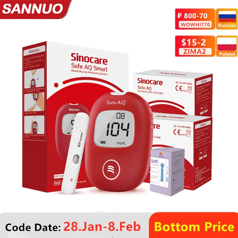 Глюкометр Sannuo Safe AQ, с тест-полосками и ланцетами, 5s