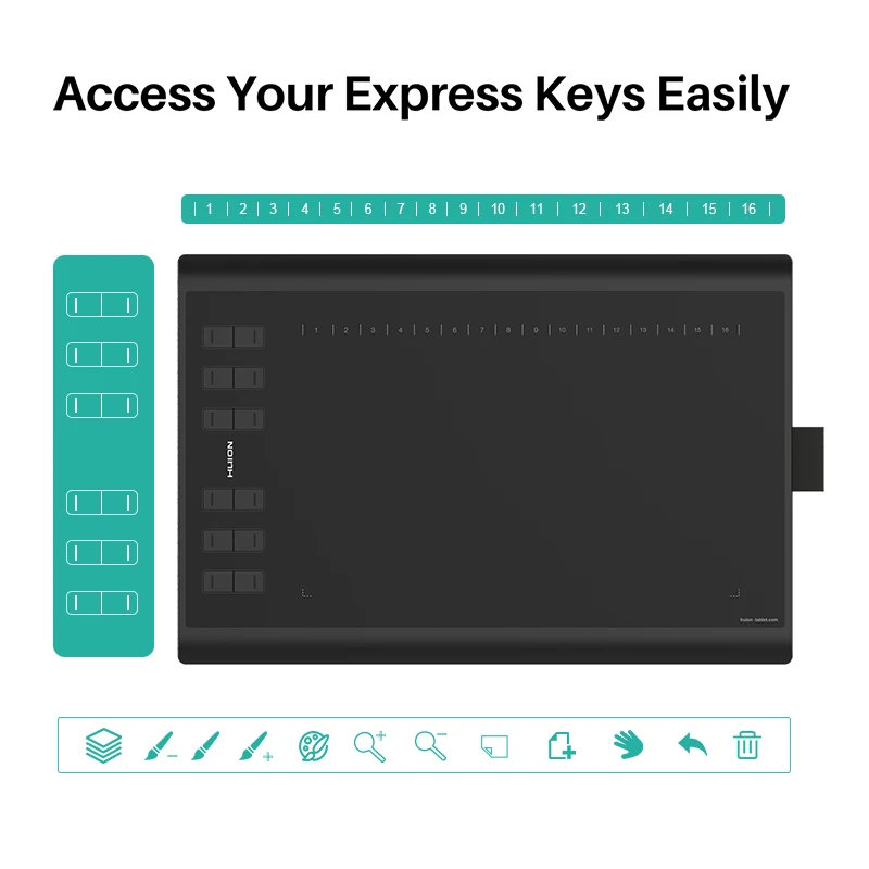 Графический планшет HUION H1060P для рисования, безбатарейный стилус, цифровые планшеты, уровень давления пера 8192, 12 быстрых клавиш, OTG адаптер