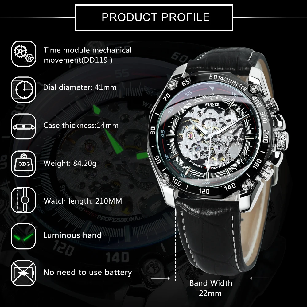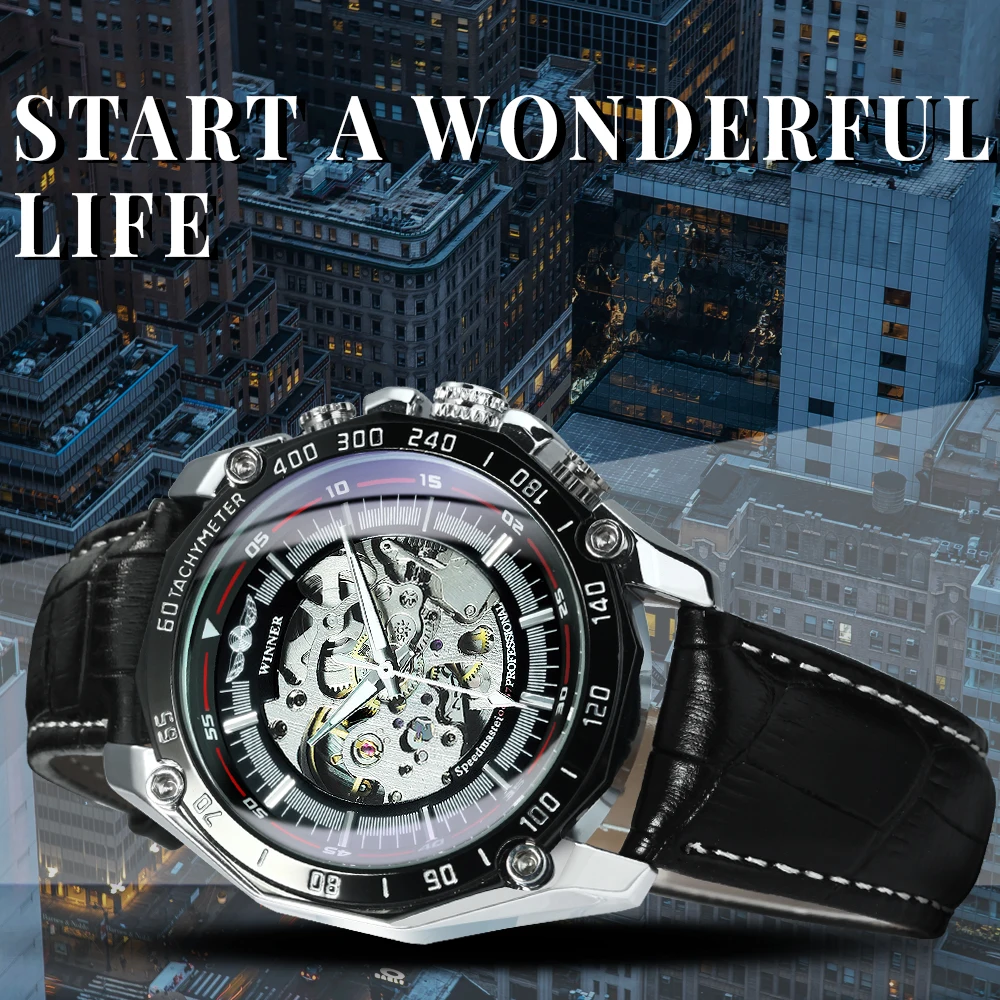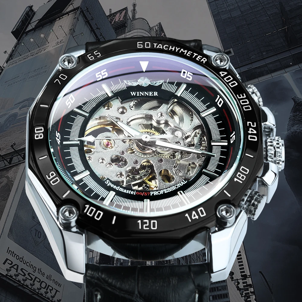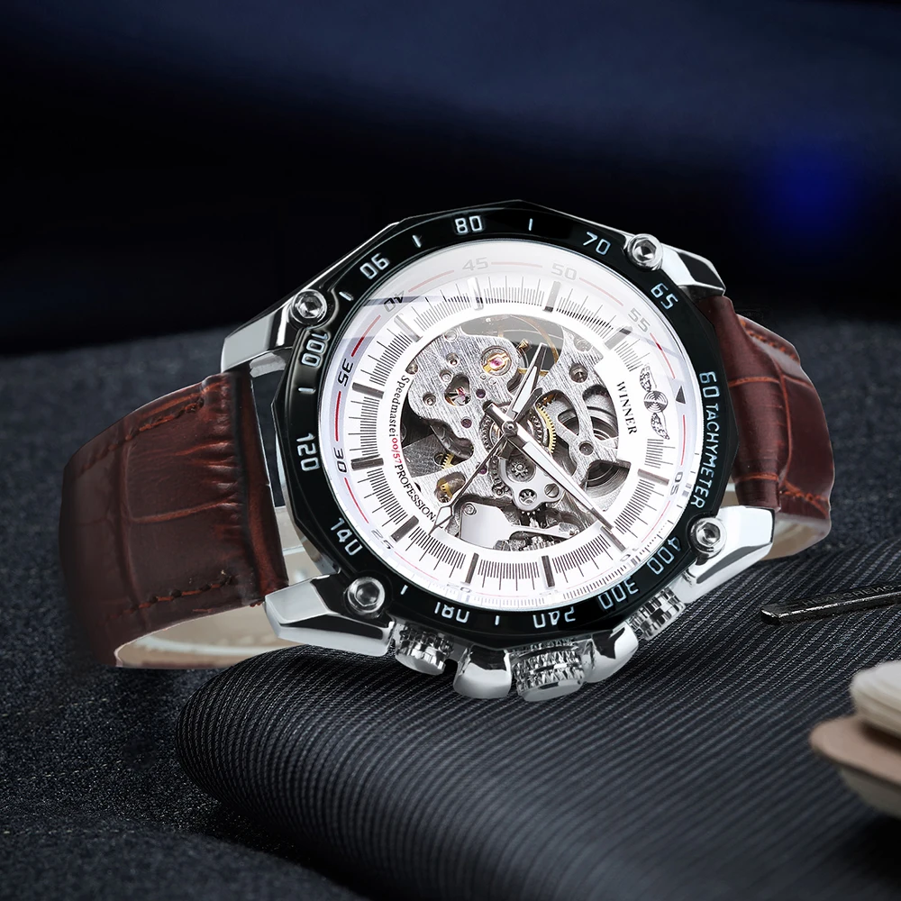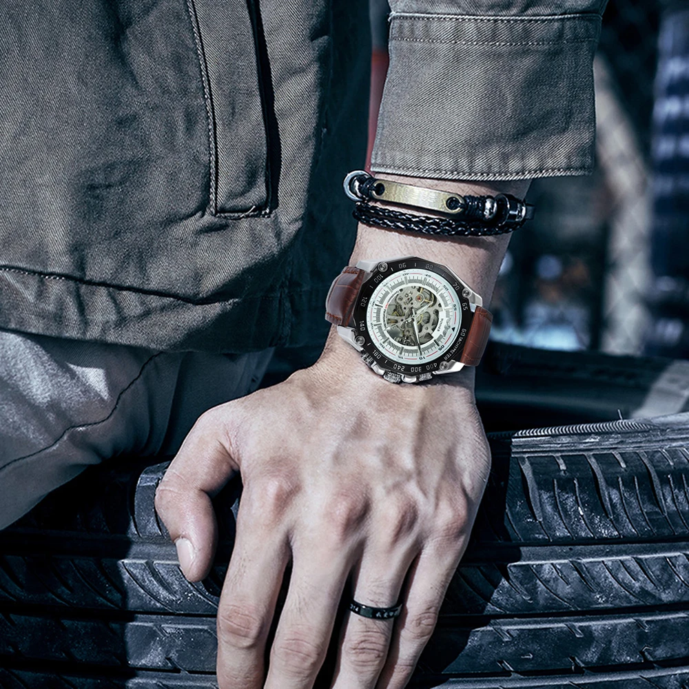 Часы-скелетоны Мужские механические, с кожаным ремешком