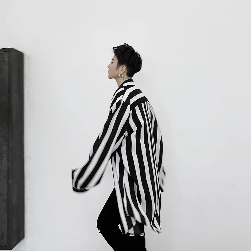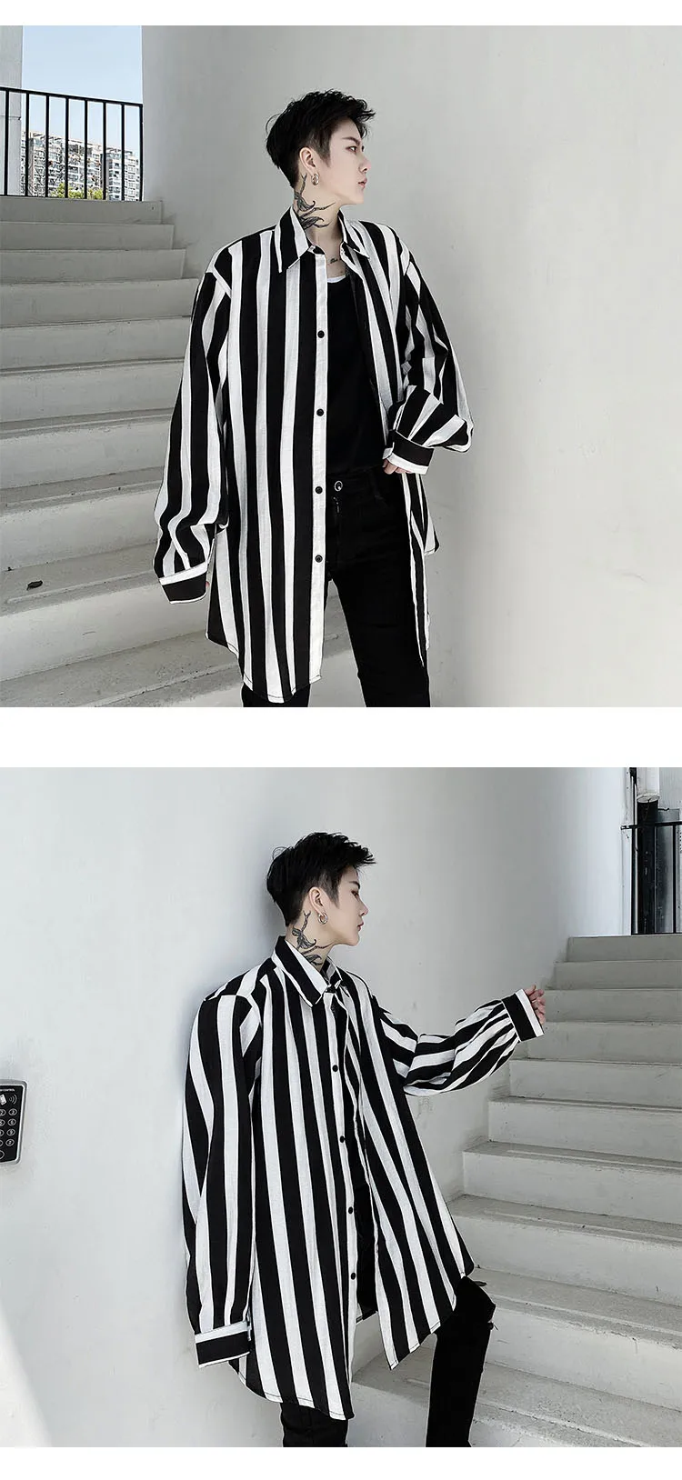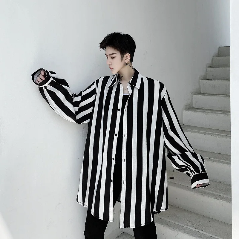 Рубашка в полоску оверсайз для мужчин и женщин, уличная одежда для пар, Повседневная Свободная Классическая рубашка с длинным рукавом в стиле Харадзюку, кардиган в стиле хип-хоп