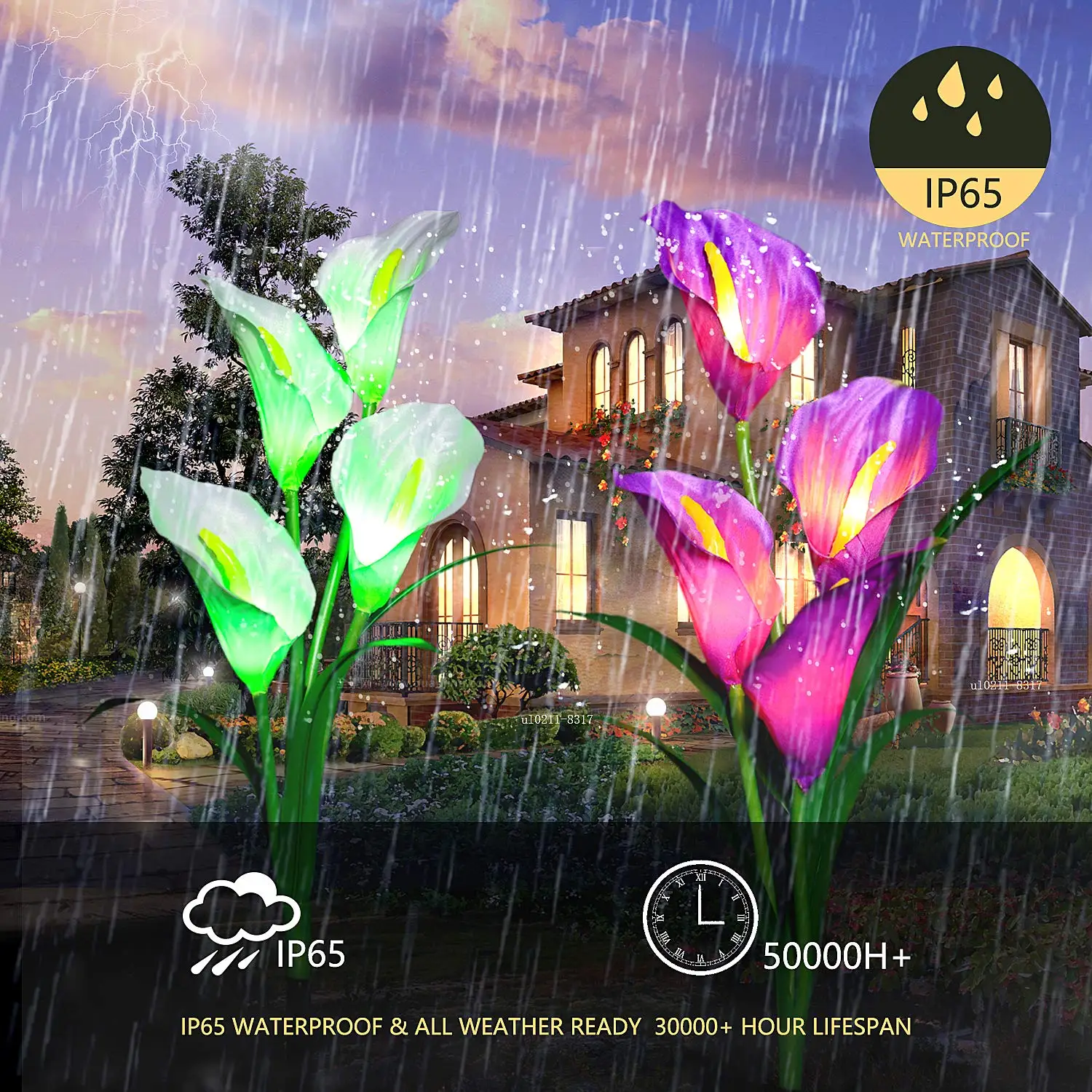 Уличная водонепроницаемая лампа на солнечной батарее, декоративный садовый светильник в виде цветов лилии, хризанцев, для двора, дорожек, ландшафта, 2 упаковки