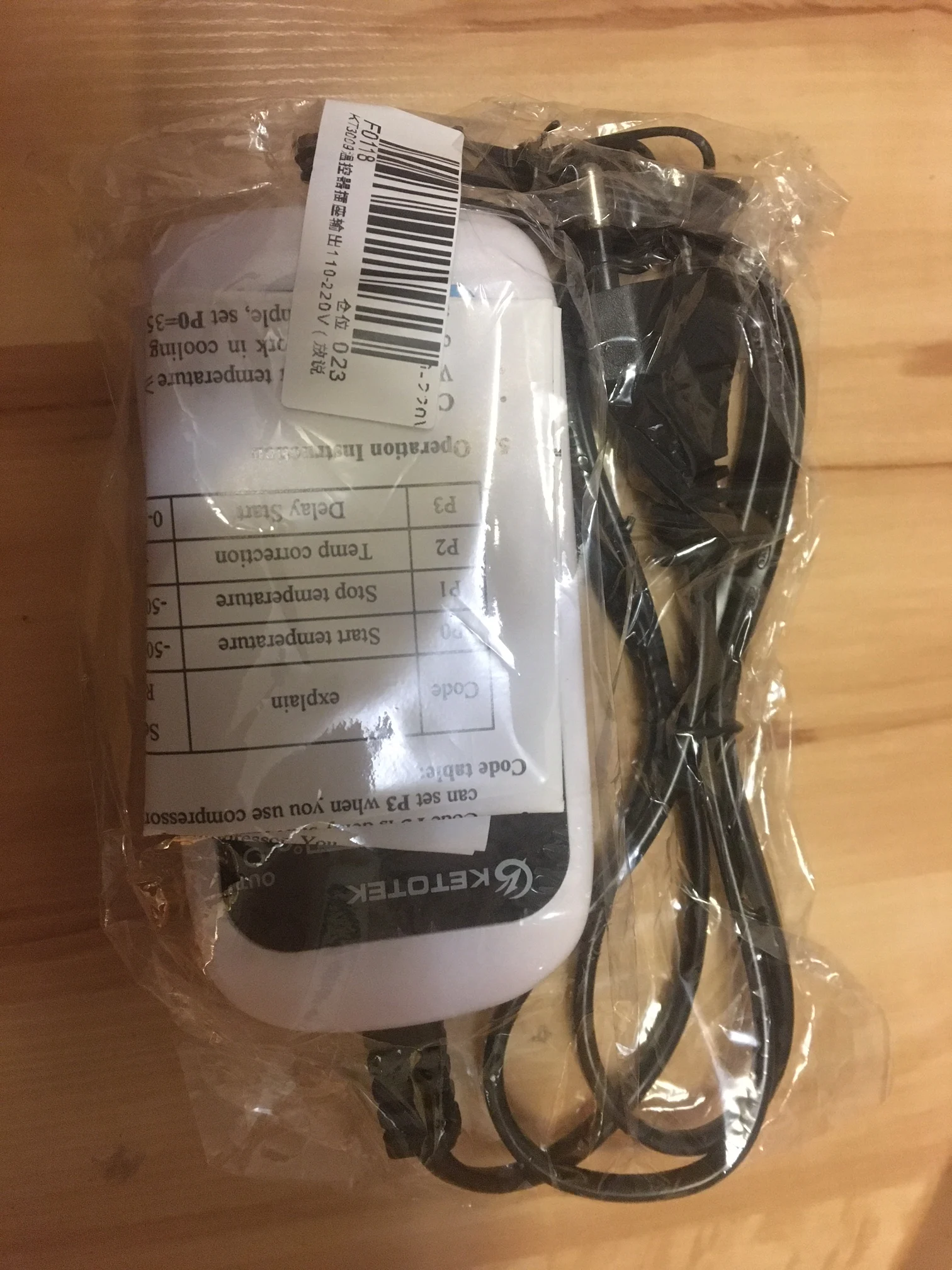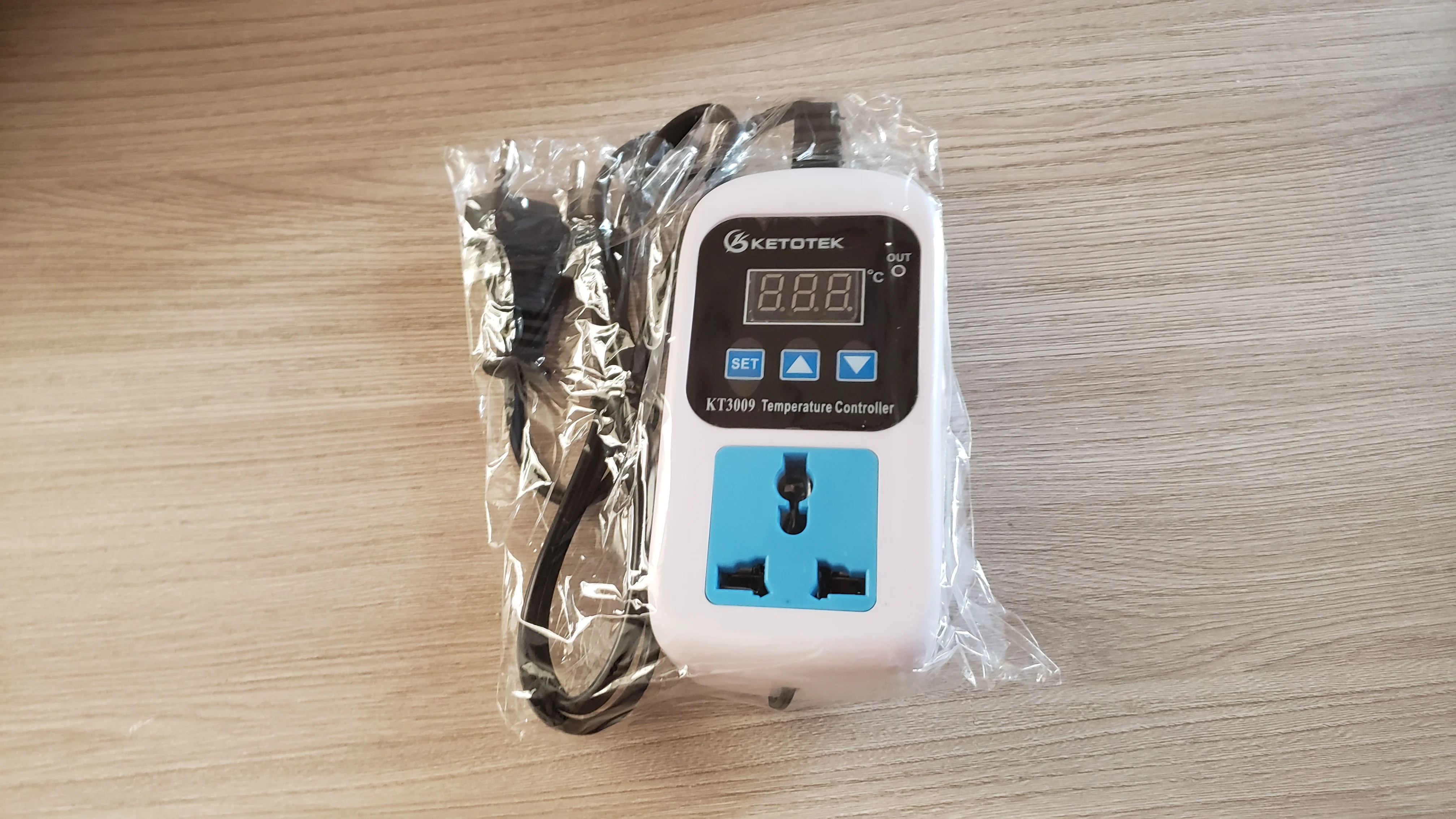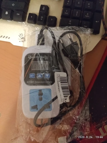 Доставка 22 дня. Упакован в целлофановый пакет и обернут поролоном. По размеру чуть больше мобильника. Настройка голову сломаешь. Но при этом работает точно. Можно его и под нагрев и под охлаждение использовать. Тем кто выбирает рекомендую версию с двумя кнопками не брать, настройка такая, же а кнопок меньше. (просто неудобно) Будете брать берите только с тремя кнопками. В целом прибор годный. Рекомендую