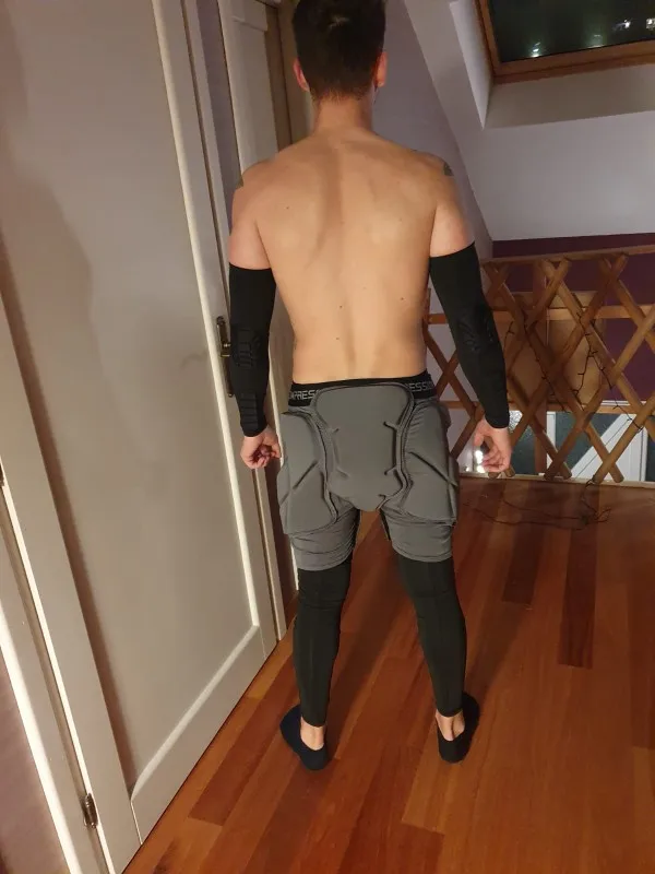 Очень классные световые протекторы. Уже udowodnily его стоит во время зимнего хоккея escapad. Вы можете носить под джинсами или спортивными костюмами и не чувствовать дискомфорта, например, с полной жесткой защитой на липучке. Силиконовый хорошо удерживающий протектор на месте, но волосы wyrywa :)