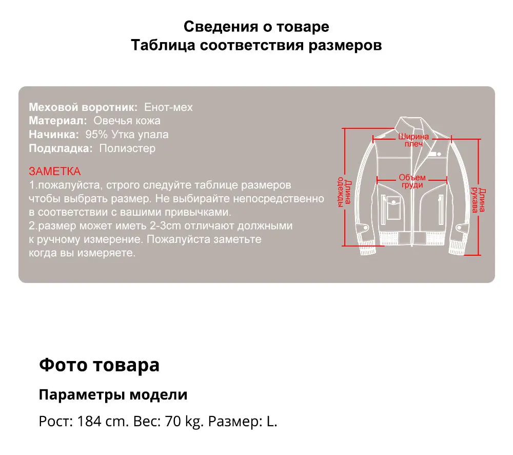 Мужской кожаный пуховик из овечьей шкуры FLAVOR, байкерское теплое ...
