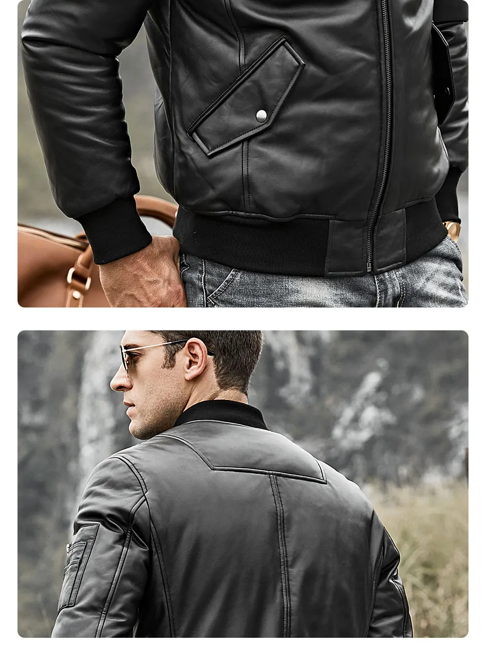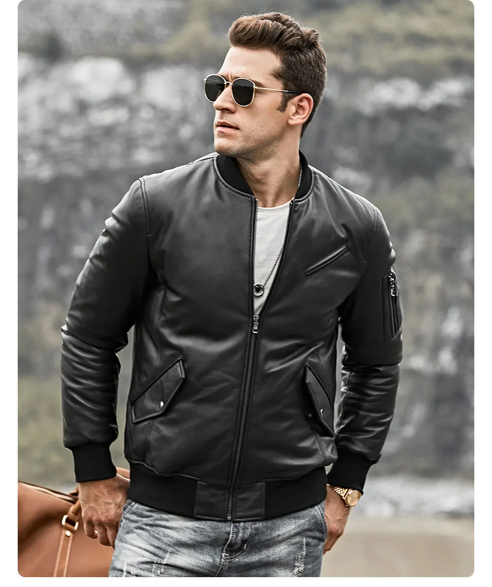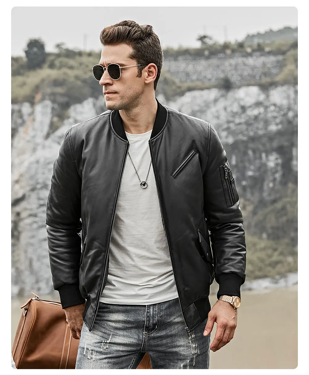 Мужской пуховик из натуральной кожи FLavor, бейсбольная куртка из натуральной кожи ягненка, теплое пальто на белом утином пуху
