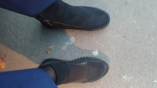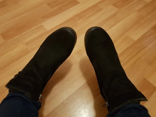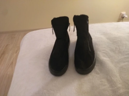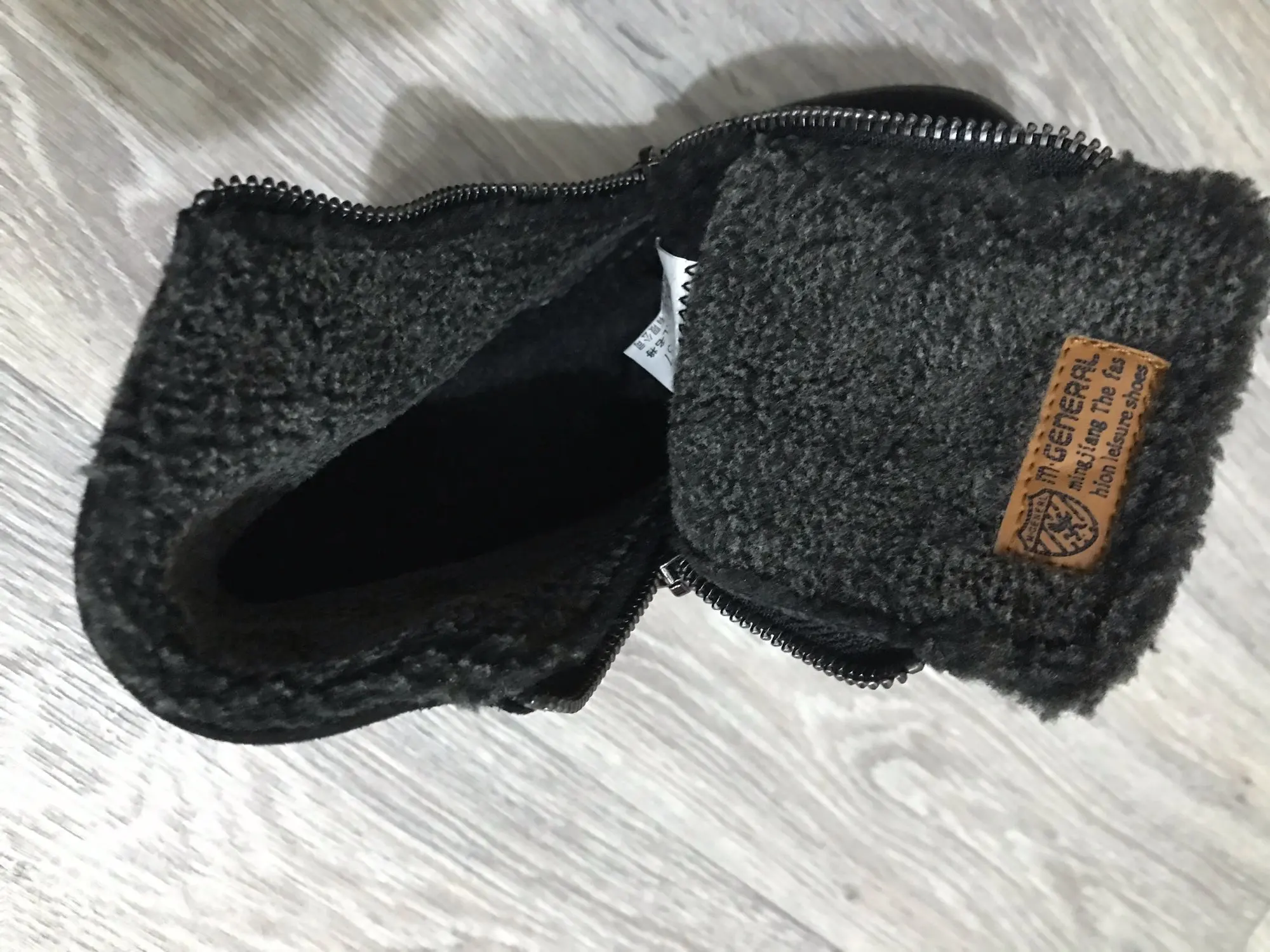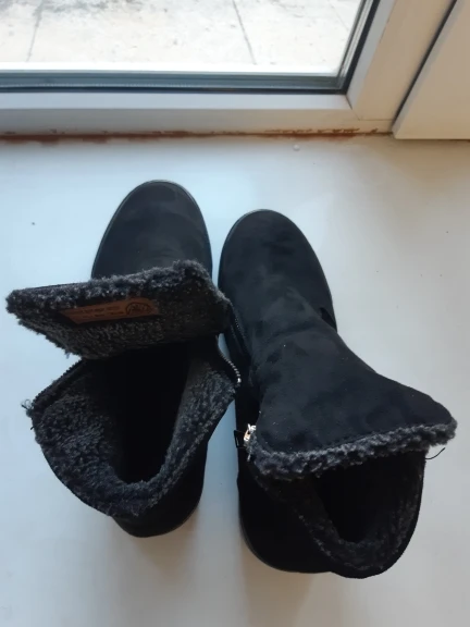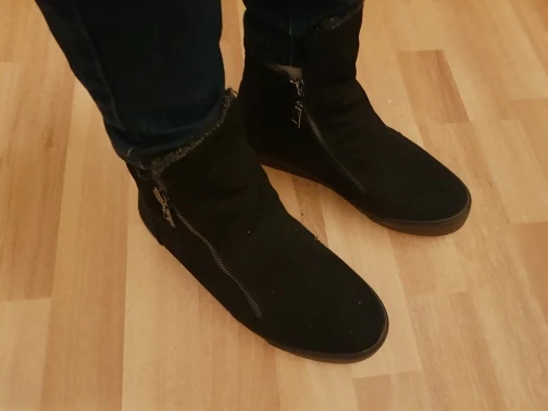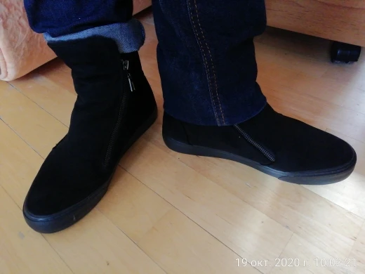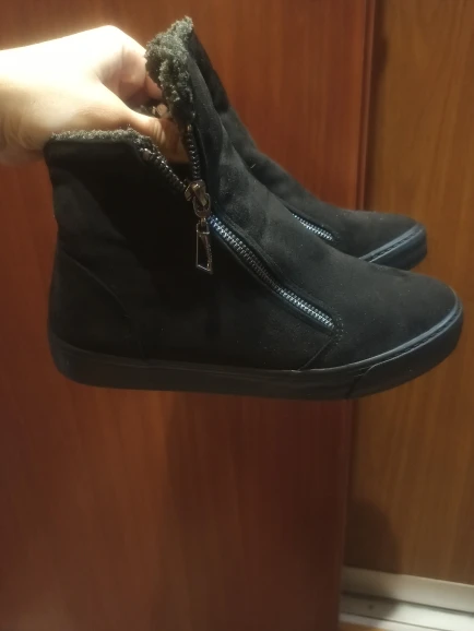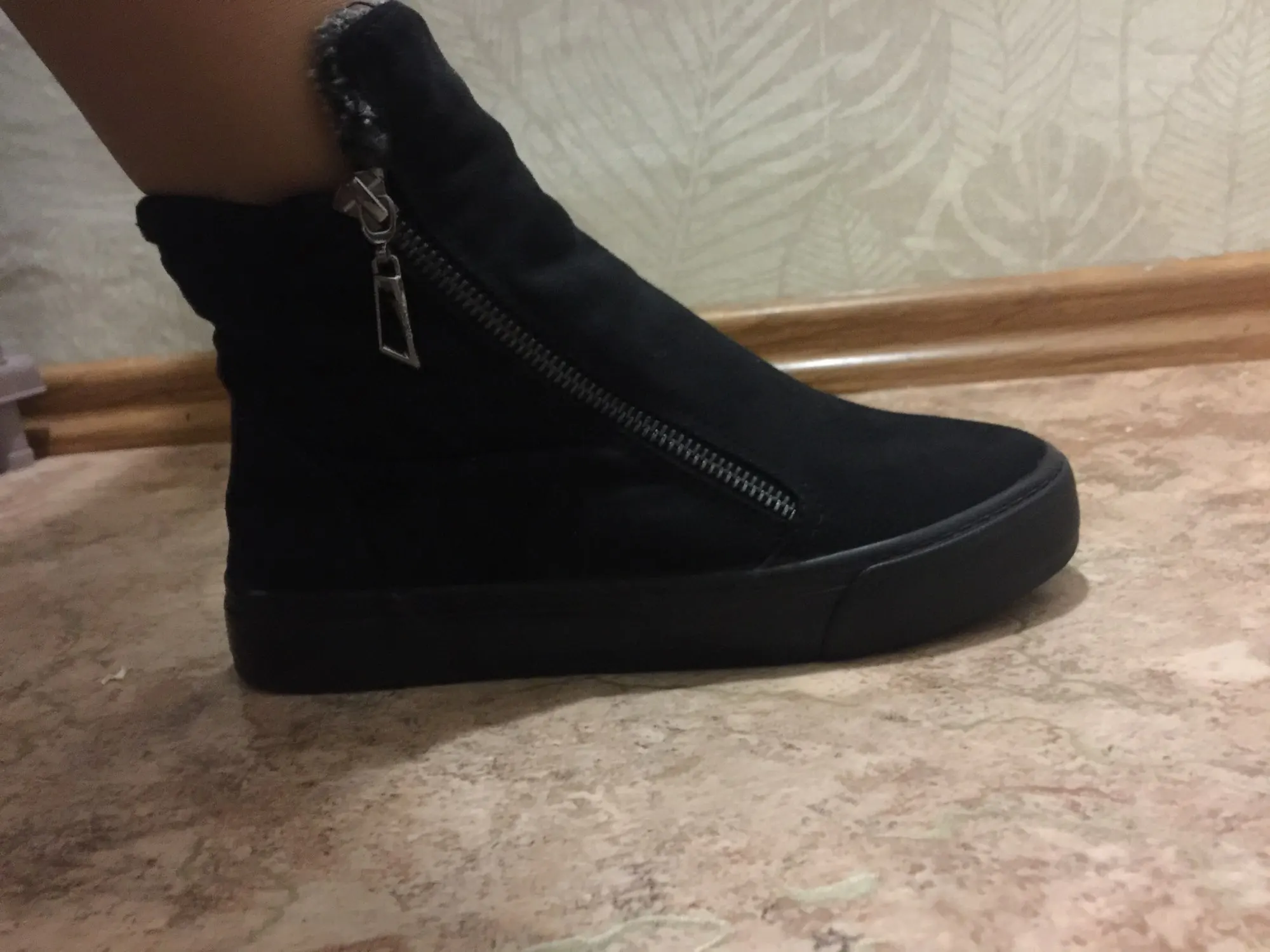 Классные ботиночки. На температуру до -5 градусов при интенсивной ходьбе норм. Материал похож на натуральную замшу. За счёт высоких бортов обувь меньше загрязняется. Подошва резиновая, поэтому стоять в них на морозе длительное время холодно. Обе молнии работают. Обувь сохраняет форму при ежедневной носке.