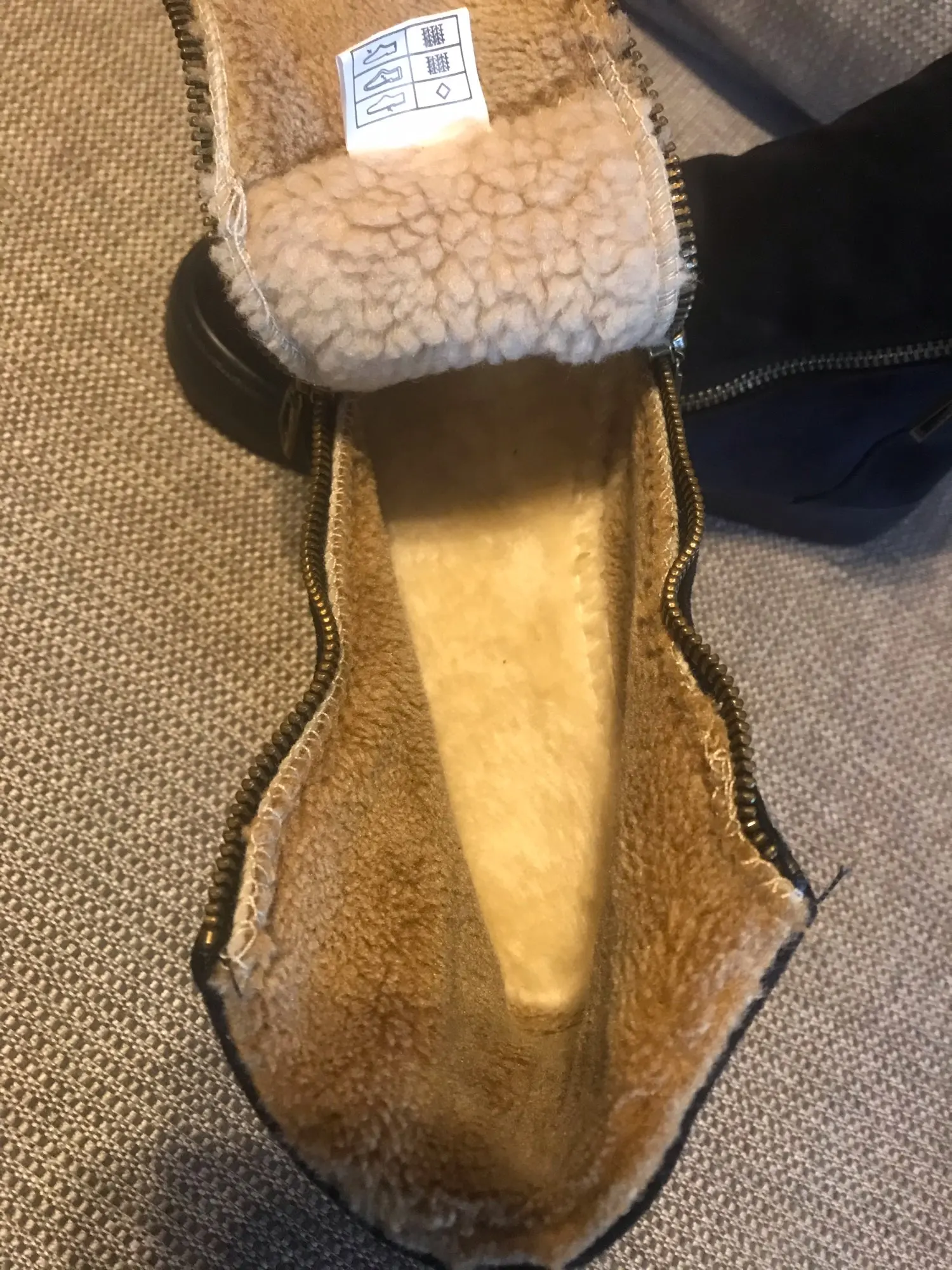 Заказывала размер 8,5. На 38 почти впритык. Мех тонкий. Ботинки лёгкие, на ноге смотрятся хорошо. Мне пришли с небольшим браком. Вопрос с продавцом решили быстро. Доставили в срок . Пожелания продавцу-проверяйте товар перед отправкой!