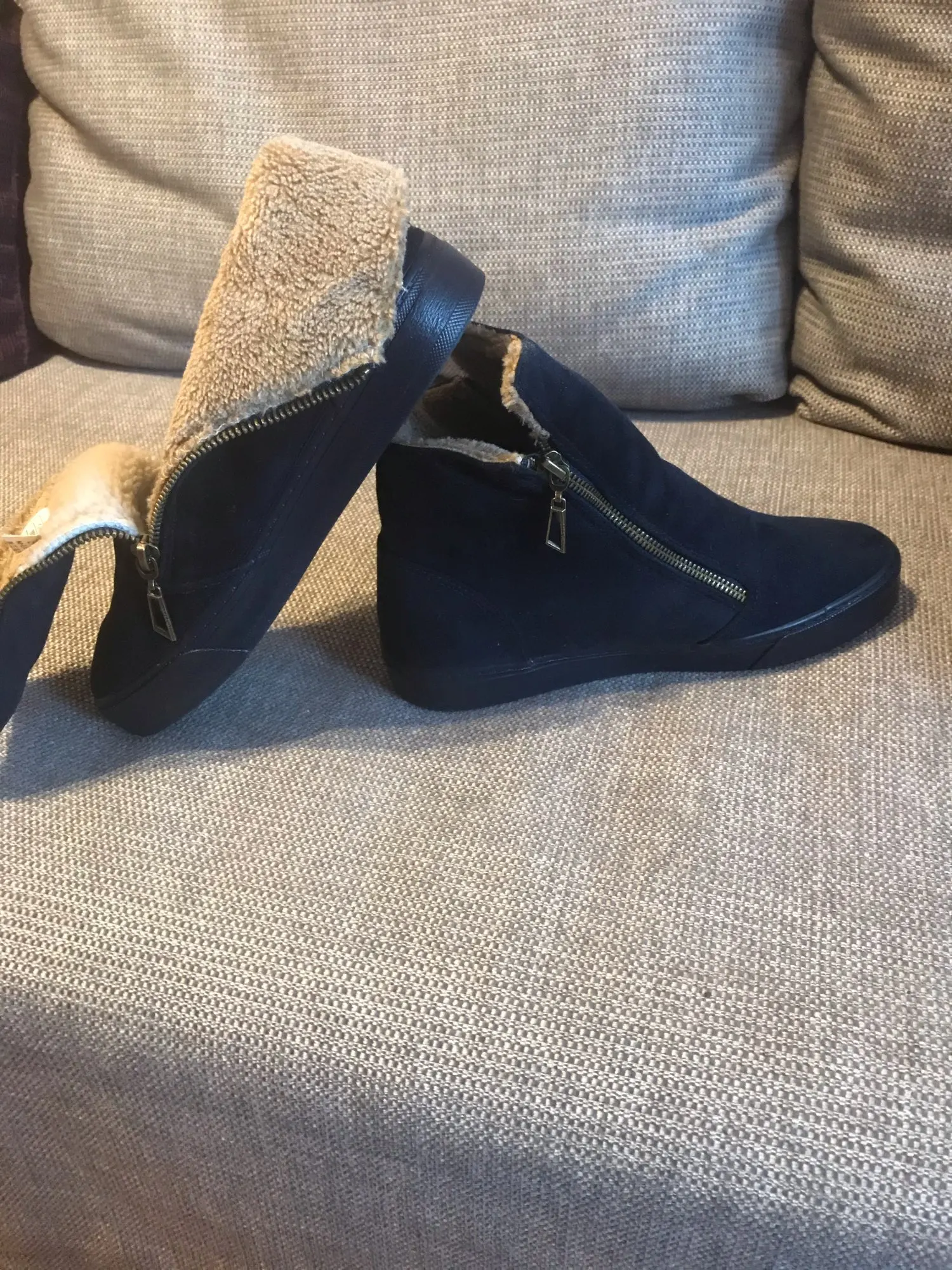 ботиночки шикарные! продавец помог и вовремя подсказал что на 36 нужен 38 .такие же как на фото . замшевые мягкие удобные ! упакованы были очень хорошо доставка быстрая две недели .Я в восторге отдельное спасибо АлиЭкспресс моему продавцу ! рекомендую всем!
