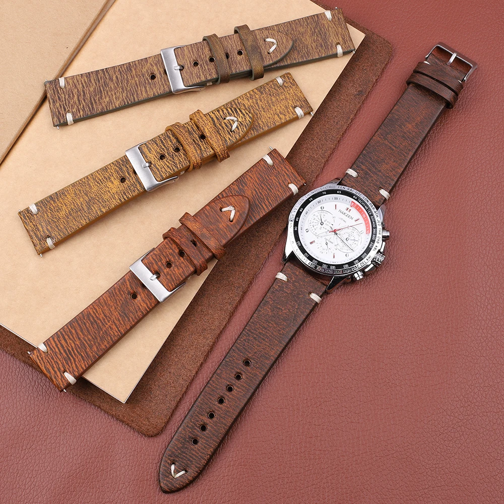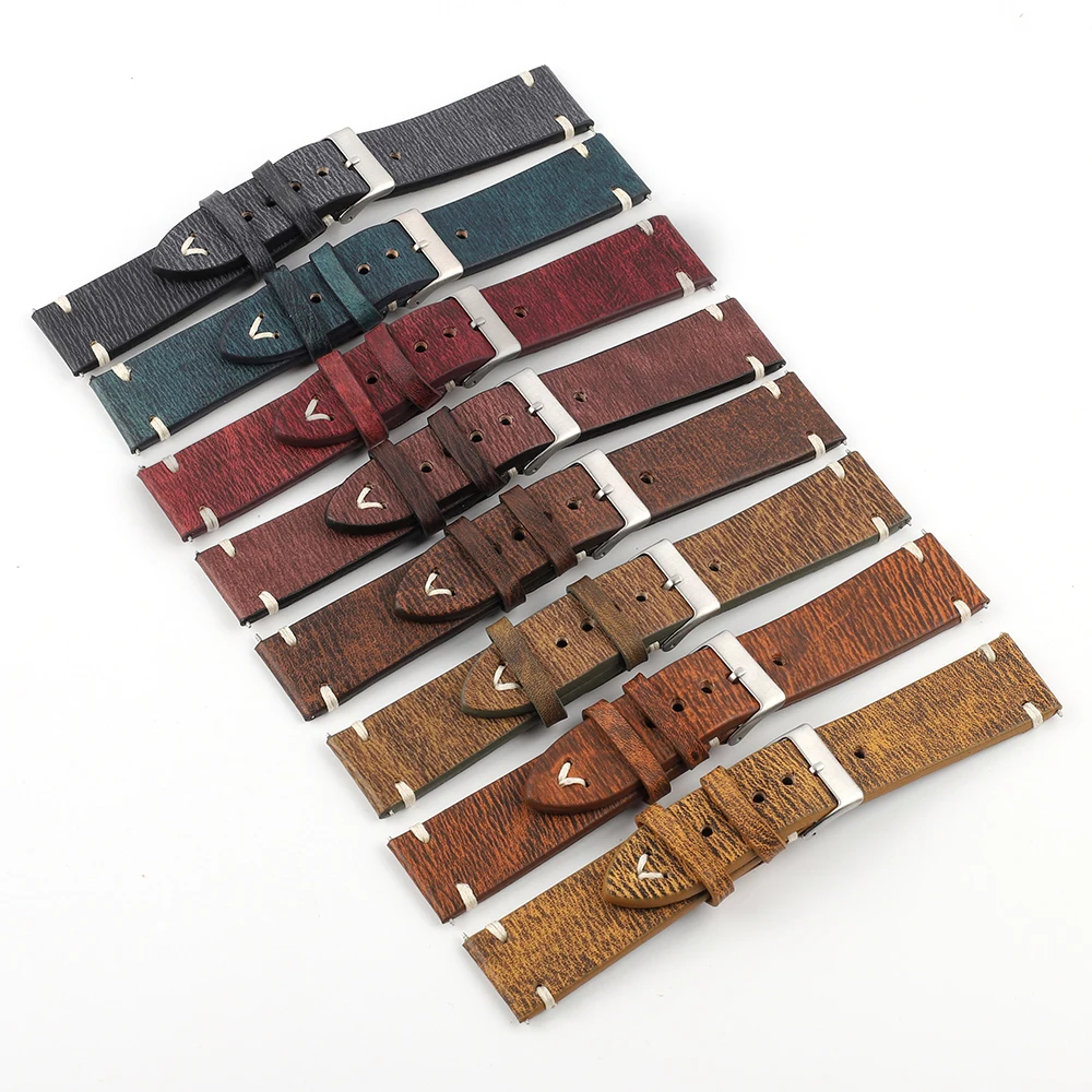 Ремешок из натуральной телячьей кожи для наручных часов, винтажный браслет ручной работы для мужчин и женщин, металлическая пряжка, 18 мм 20 мм 22 мм 24 мм