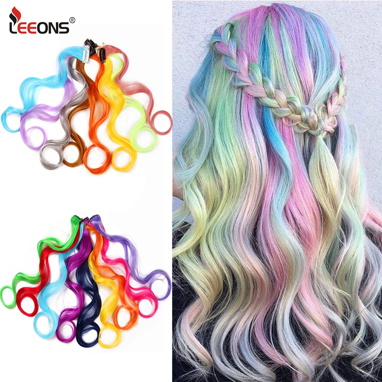 Синтетические радужные волнистые удлинители волос, Длинные накладные волосы, один парик на одной клипсе, красочные синтетические волосы, искусственные накладные волосы 20 дюймов