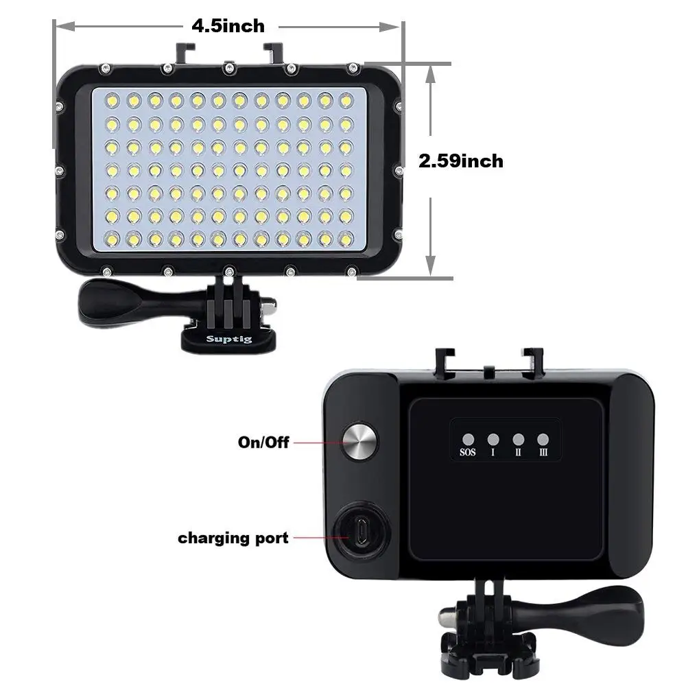 Водонепроницаемый светодиодный светильник Suptig высокой мощности с регулируемой яркостью, 84 светодиода, водонепроницаемый, 164ft(50m) для камеры Gopro Hero 6 5 4 3 XiaomiYI slr