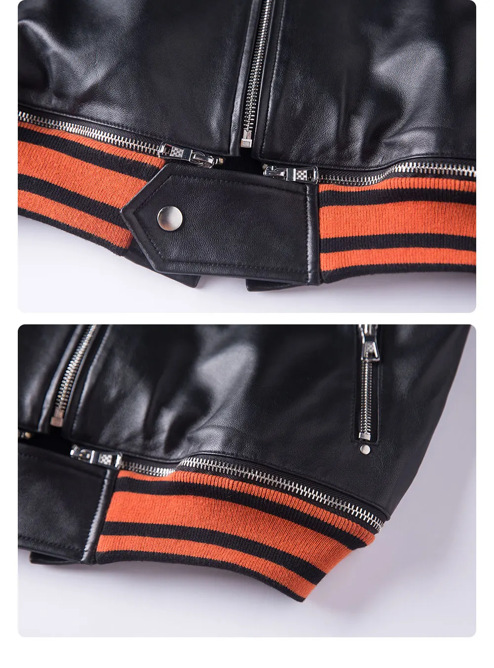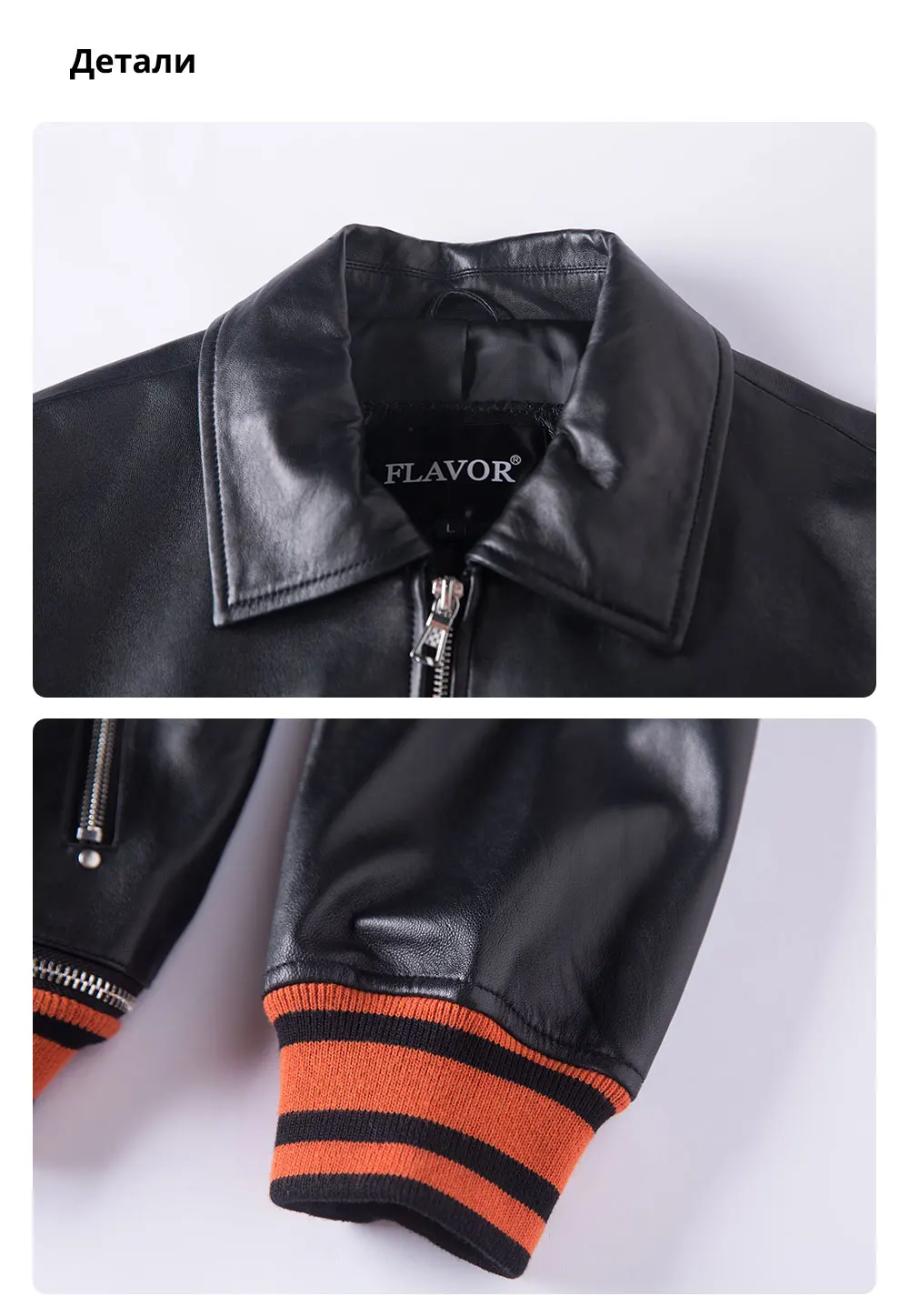 Мужской пуховик из натуральной кожи FLavor, бейсбольная куртка из н...