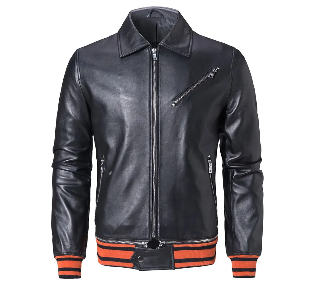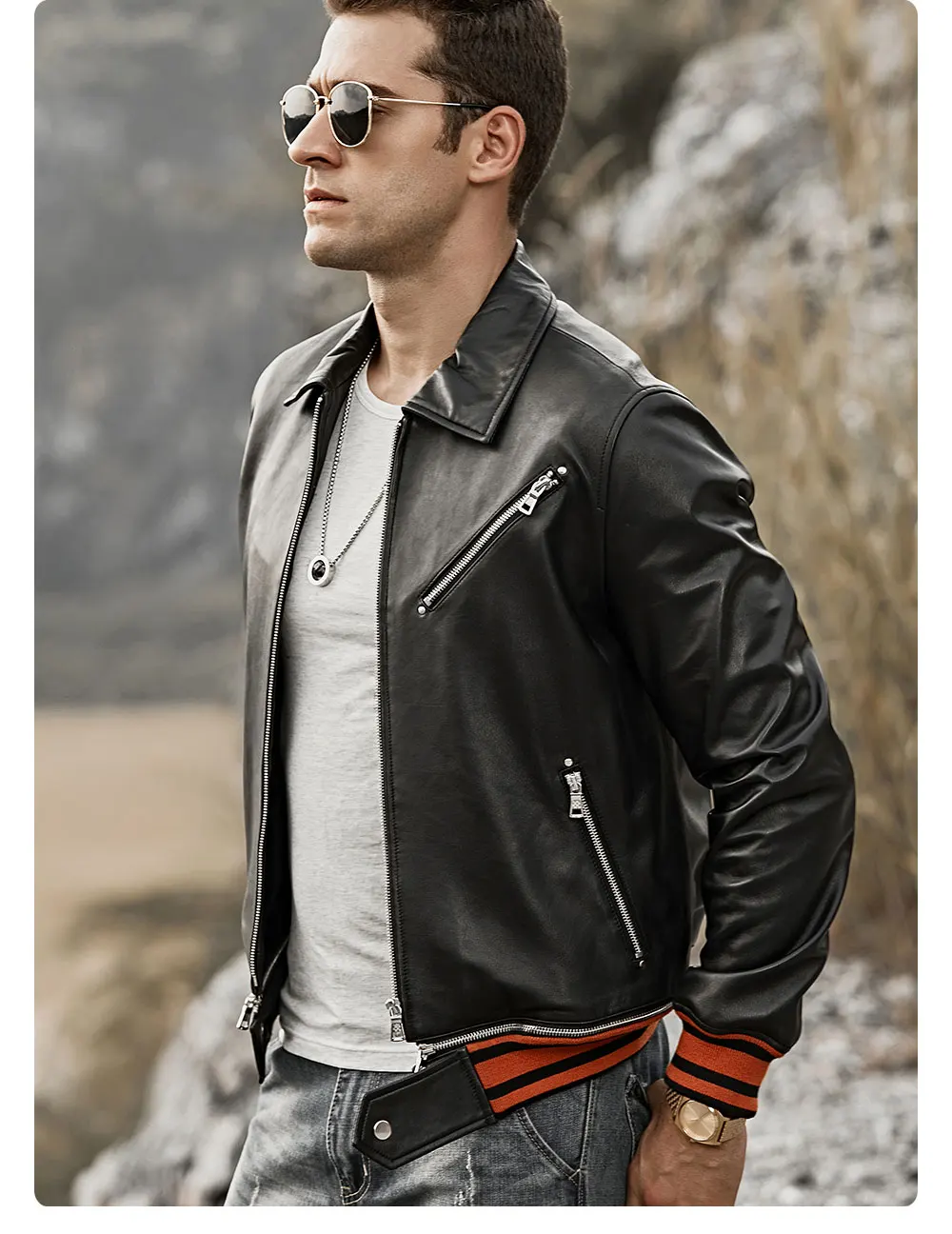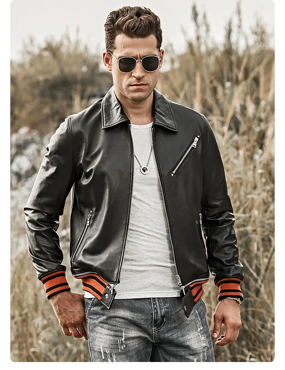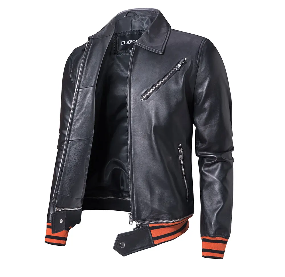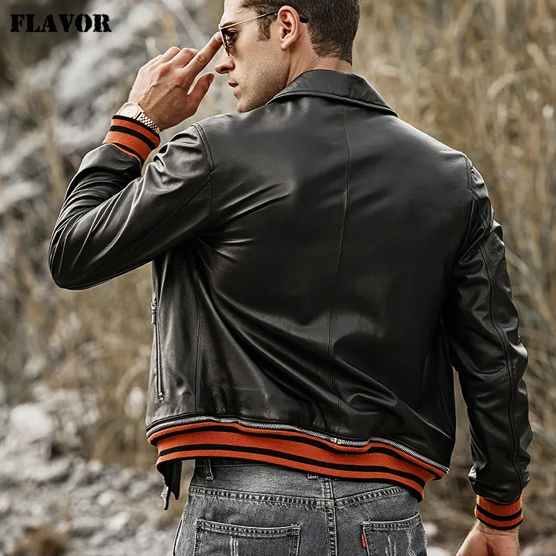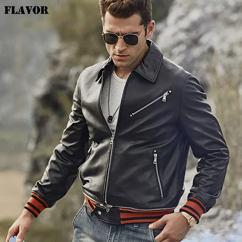 Kожаная куртка мужская байкерская FLAVOR, из овечьей шкуры, мотоциклетные облегающие куртки из натуральной кожи