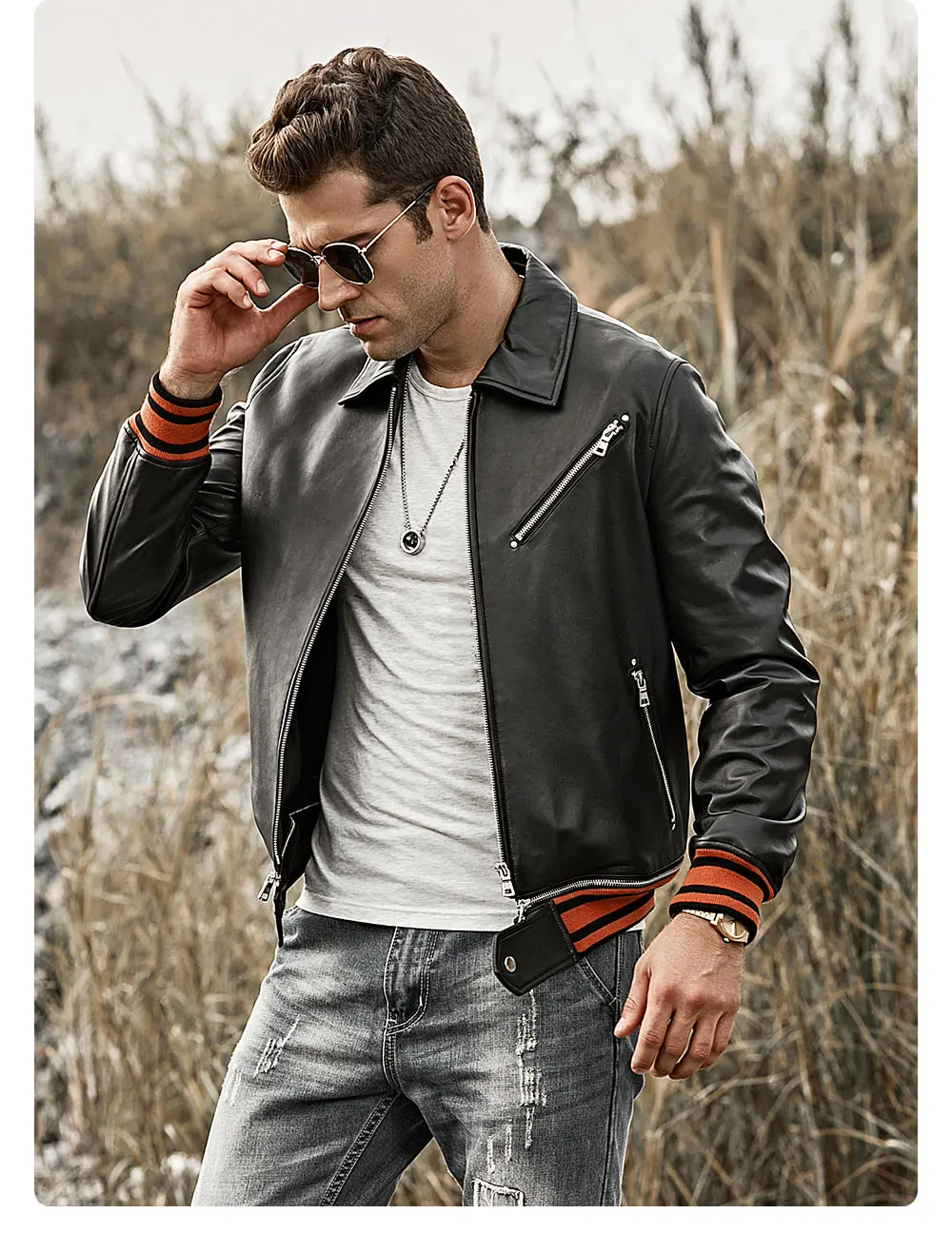 Мужская мотоциклетная куртка FLAVOR из натуральной кожи, мужская ку...