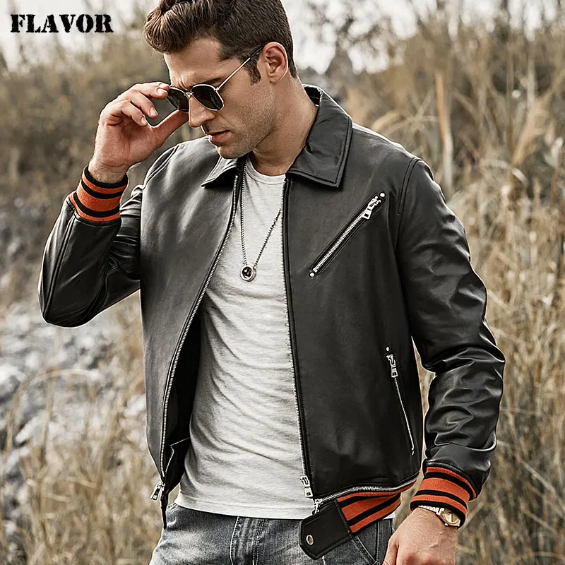 Мужская мотоциклетная куртка FLAVOR, кожаная куртка из натуральной ...