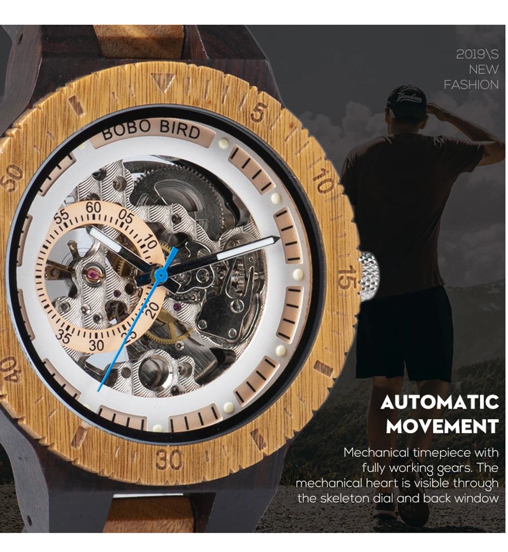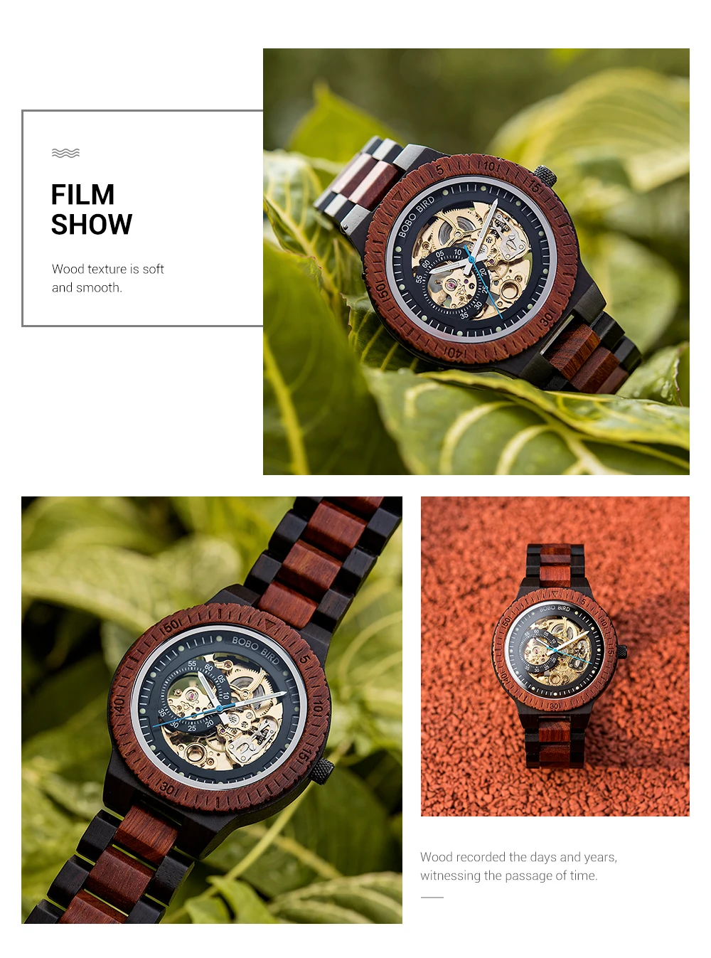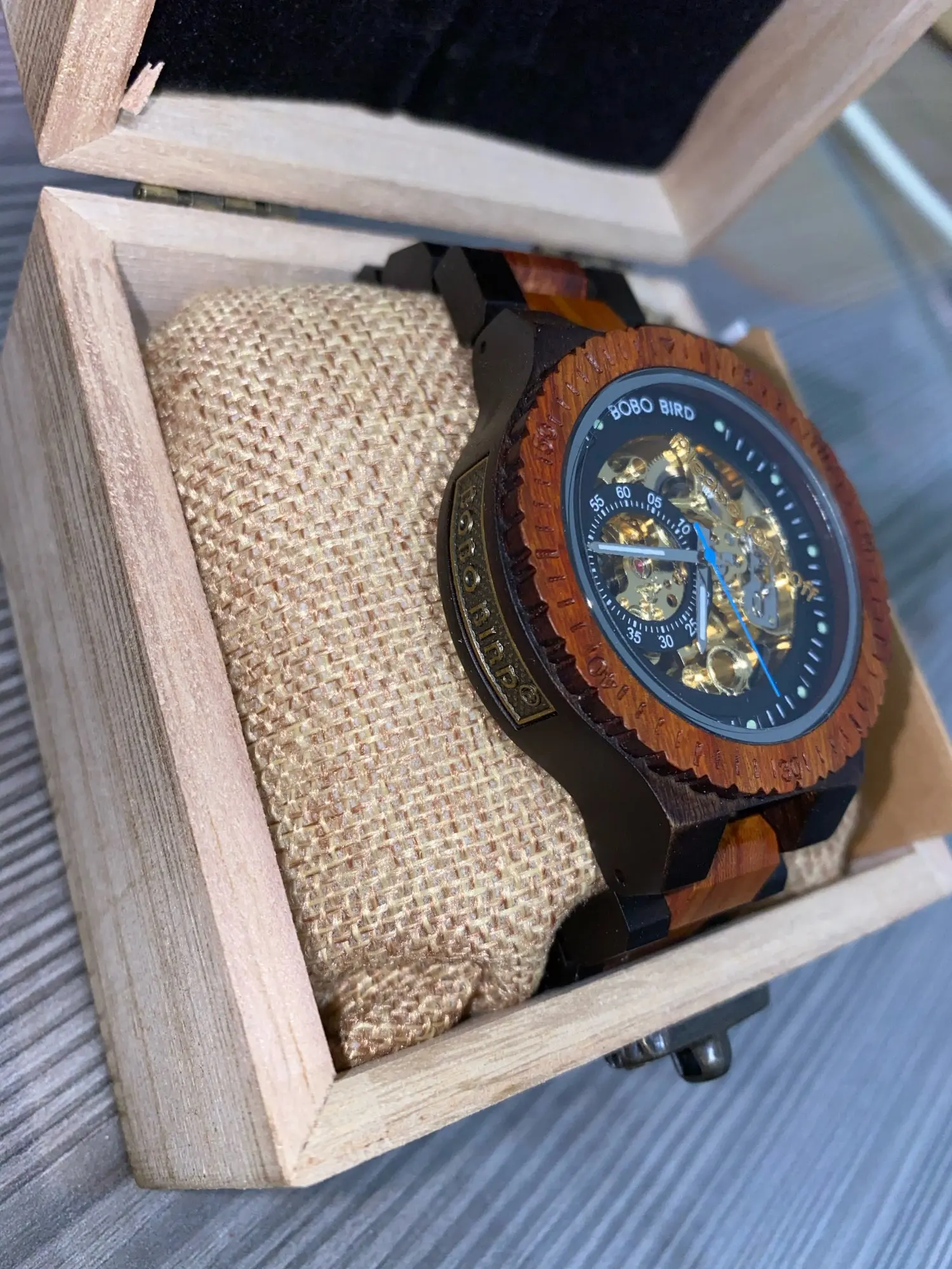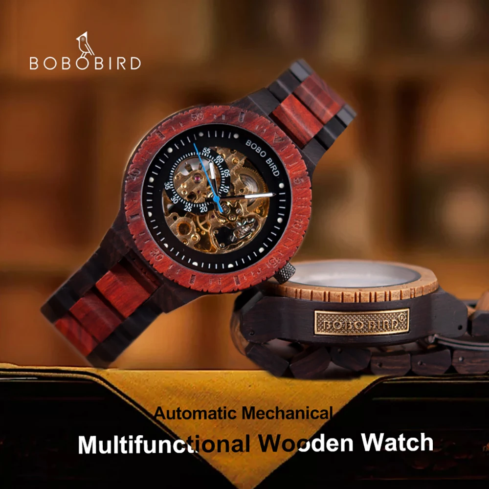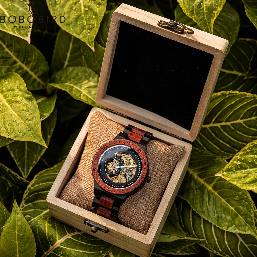 Часы наручные BOBO BIRD мужские, Автоматические Механические Многофункциональные, с деревянным ремешком, деревянная коробка для часов