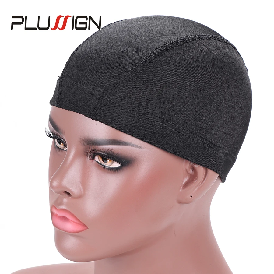 Купольная шапочка Plussign из спандекса для изготовления париков, качественная эластичная сетка для плетения волос без клея, черная, 1 шт.