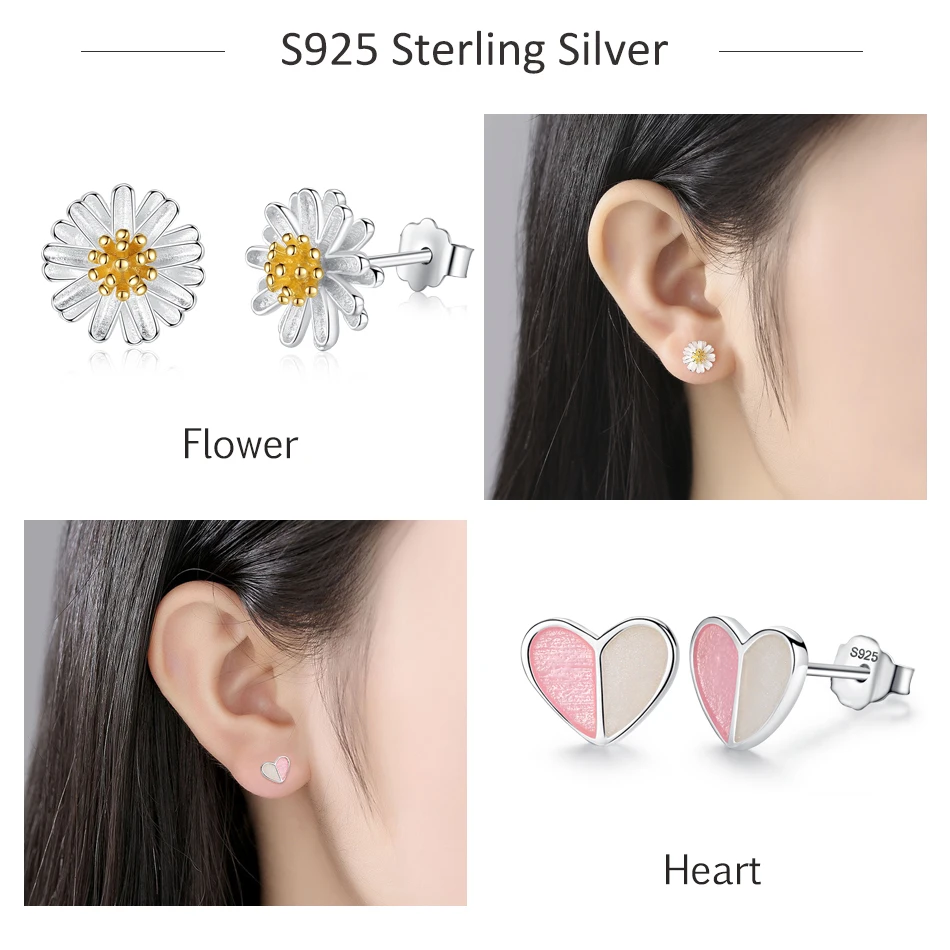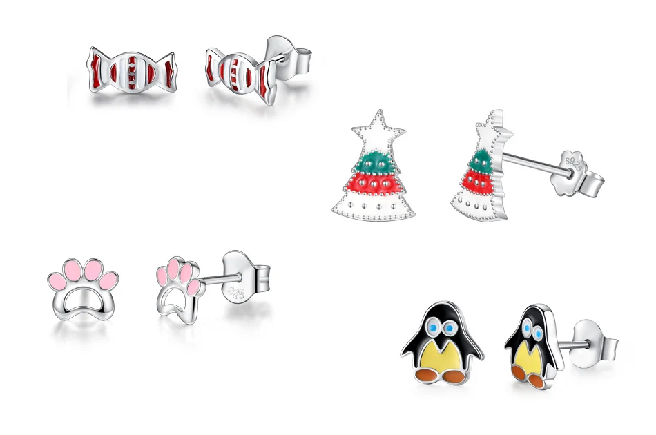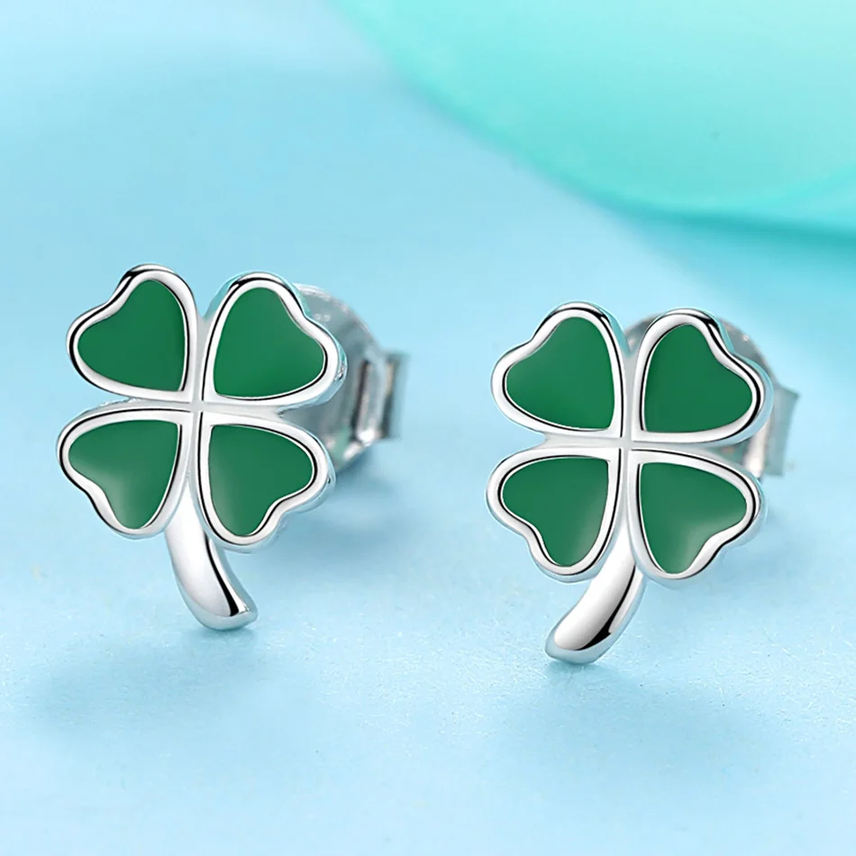 Серьги-гвоздики женские, из серебра 925 пробы, с эмалью, в виде клевера, божьей коровки, пчелы