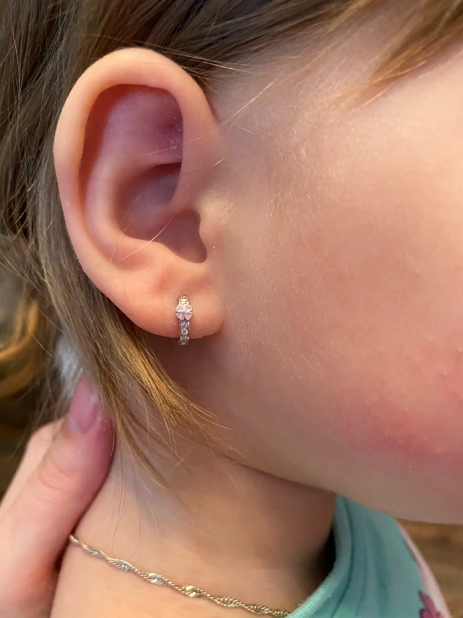 очень хорошие, маленькие серёжки. для маленьких девочек само то))) нашей малышке 2,5 года, так она крутилась с ними возле зеркала весь день.