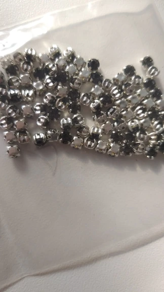 Заказывала шатоны 3 мм. прислали ровно 100 штук. В цапах сидят хорошо, у нескольких были зубчики отогнуты. Вроде шатонов много, а по конкретным цвета по чуть-чуть. Больше всего радужных и чёрных. Для конкретного изделия лучше заказывать одного цвета. До Башкирии доставка 3 недели.