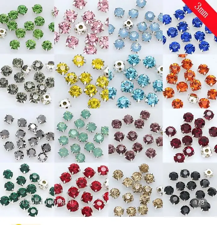 Стразы стеклянные с 4 отверстиями, 100p, 3 мм