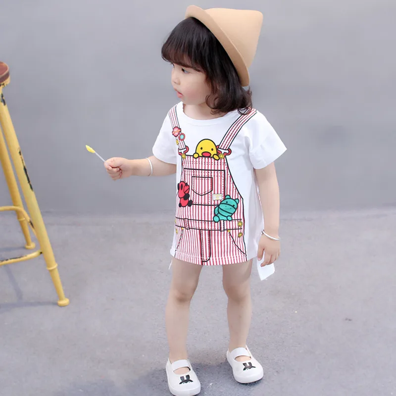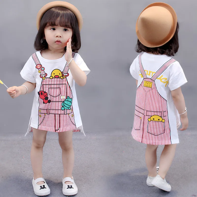 2021 летняя детская длинная футболка, платья, От 1 до 6 лет, детская одежда для маленьких девочек, хлопковая Футболка с мультяшным принтом, 100% хлопок