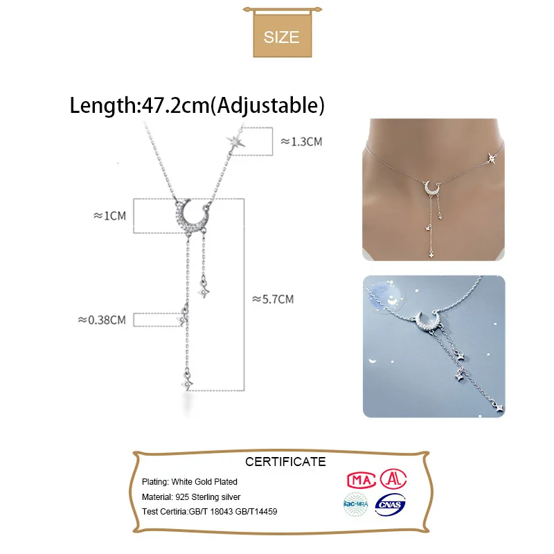 TrustDavis, подлинное серебро 925 пробы, луна, кисточка, звезда, женское Свадебное Ожерелье S925, ювелирные изделия DA1027