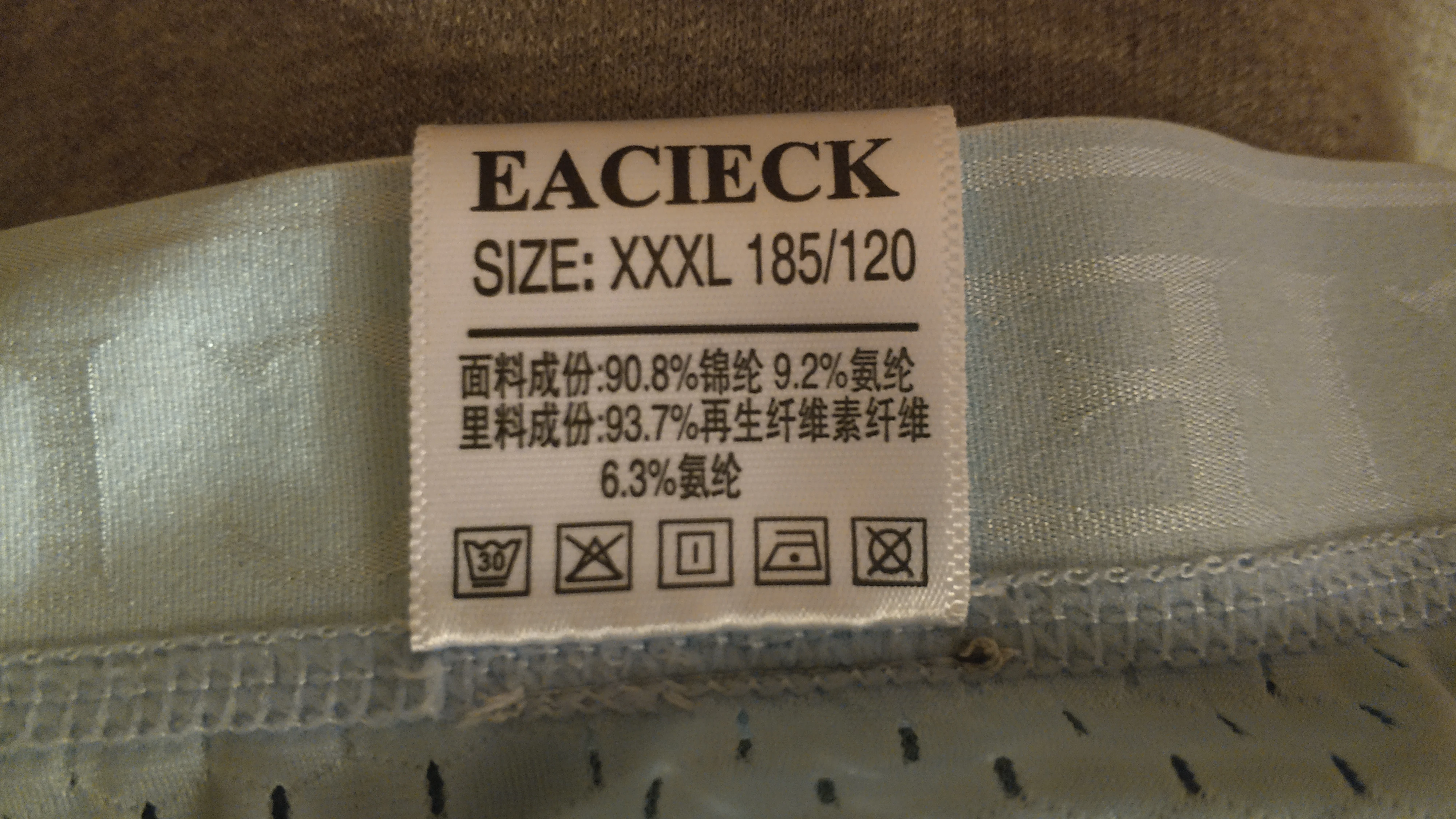 Очень хорошо дышащий материал (из-за сетки), но я не уверен, сколько стоит любой бамбук, смешанный с синтетикой. Задняя белая этикетка незаметна снаружи.