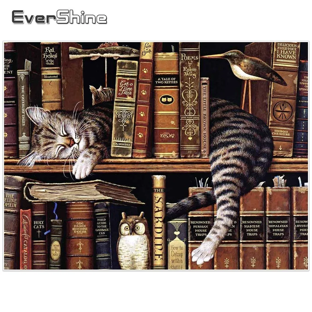 EverShine DIY алмазов картина вышивки крестом Cat фотографии Стразы полный квадратный алмаз вышивка Животные Настенный декор