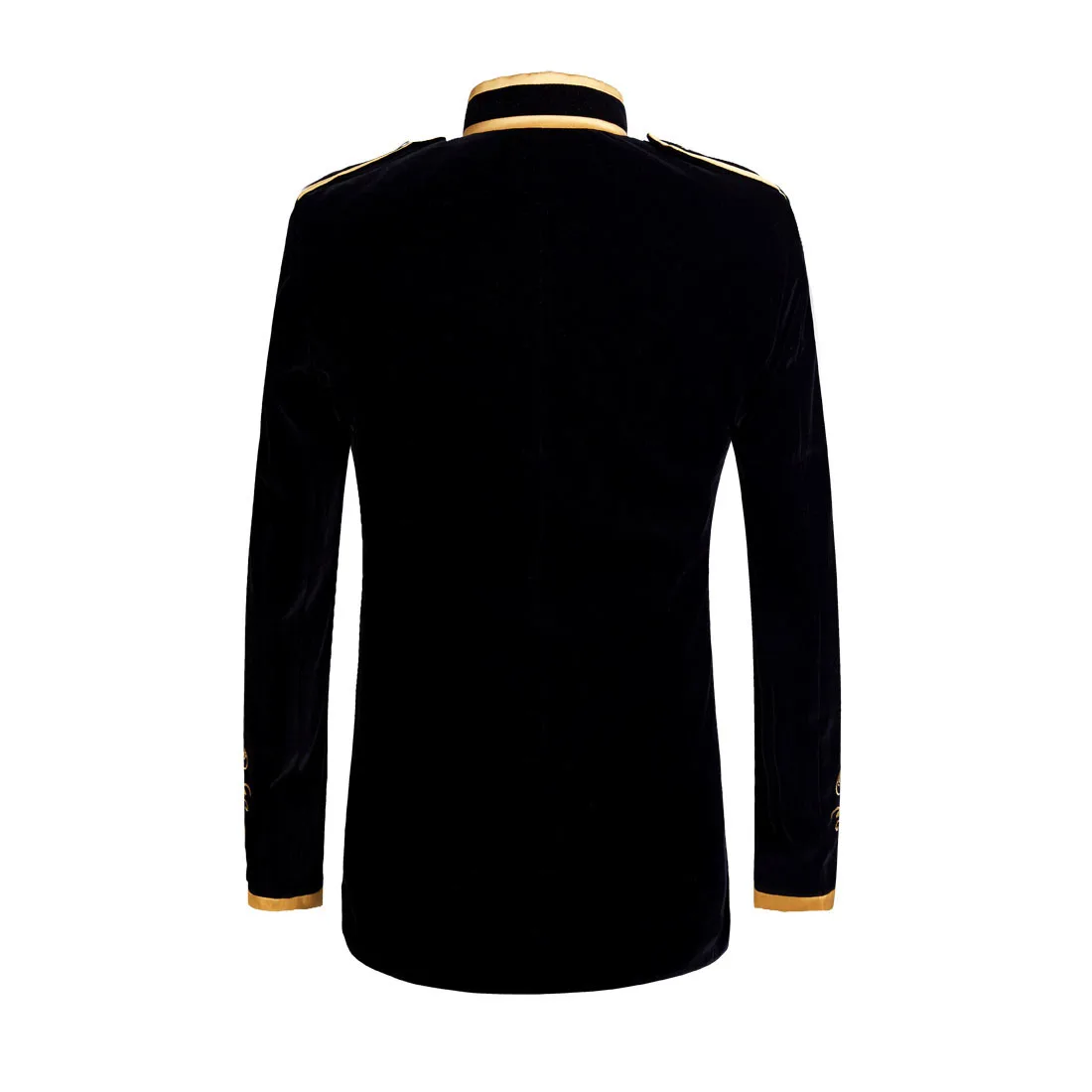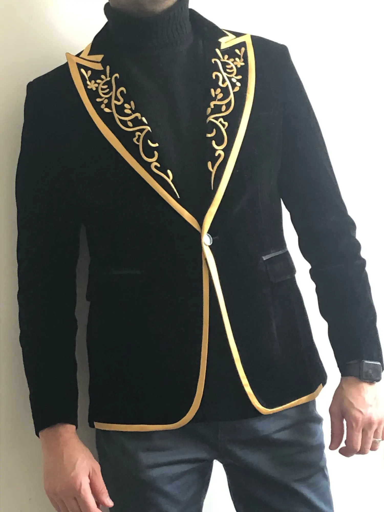 PYJTRL британский стиль дворцовый принц Модный черный бархатный Золотой блейзер в полоску с вышивкой Свадебный костюм жениха приталенный пиджак для певцов