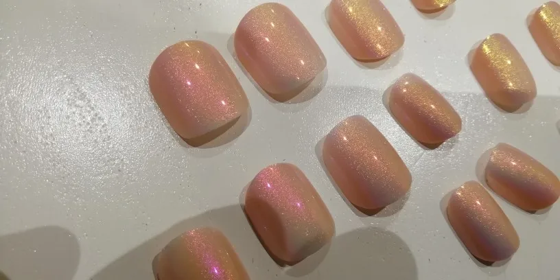 Nails were EXTREMELY thin, they cracked and snapped apart while I was putting them on, you could clearly see my natural nail.