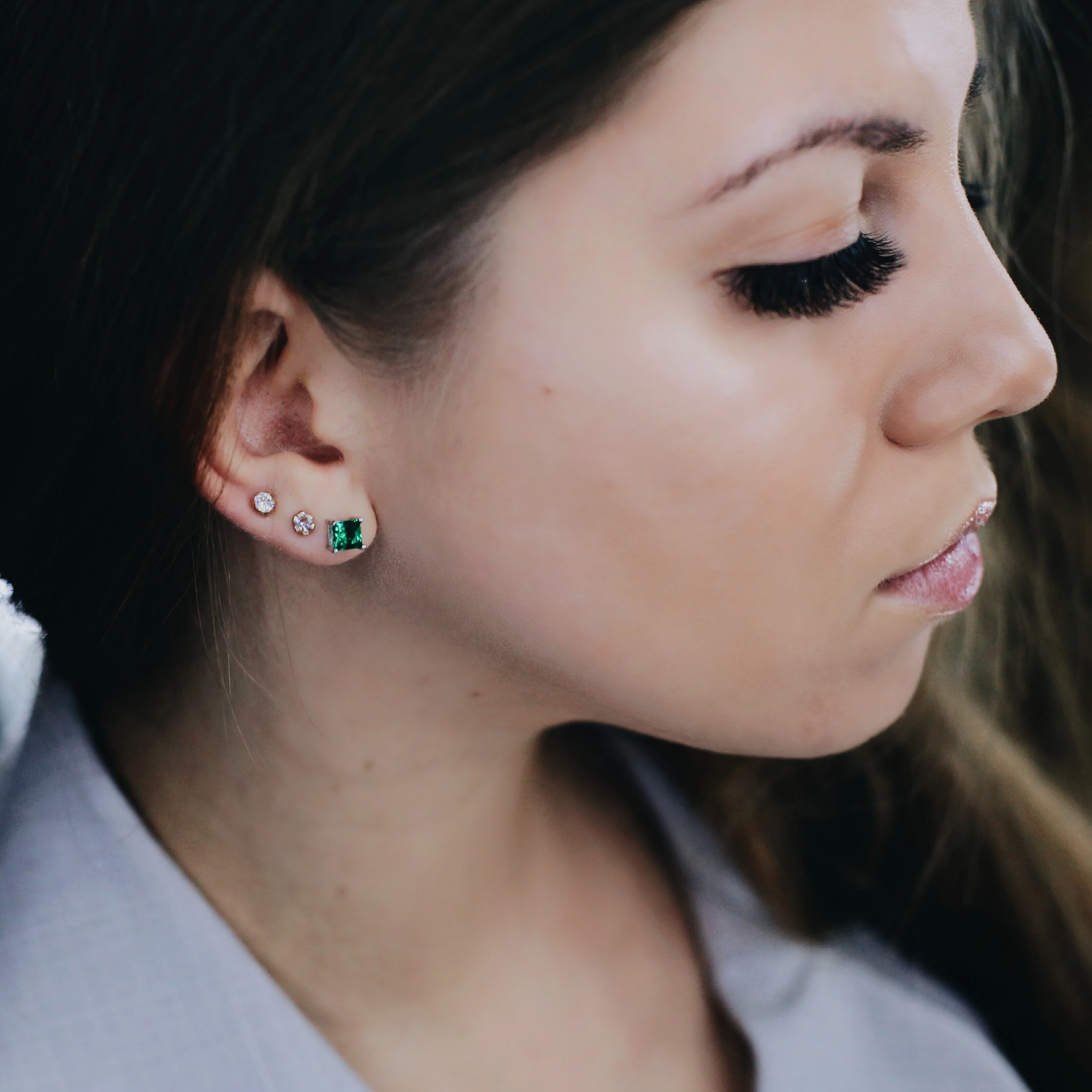 Женские серьги-гвоздики из серебра 925 пробы с изумрудом