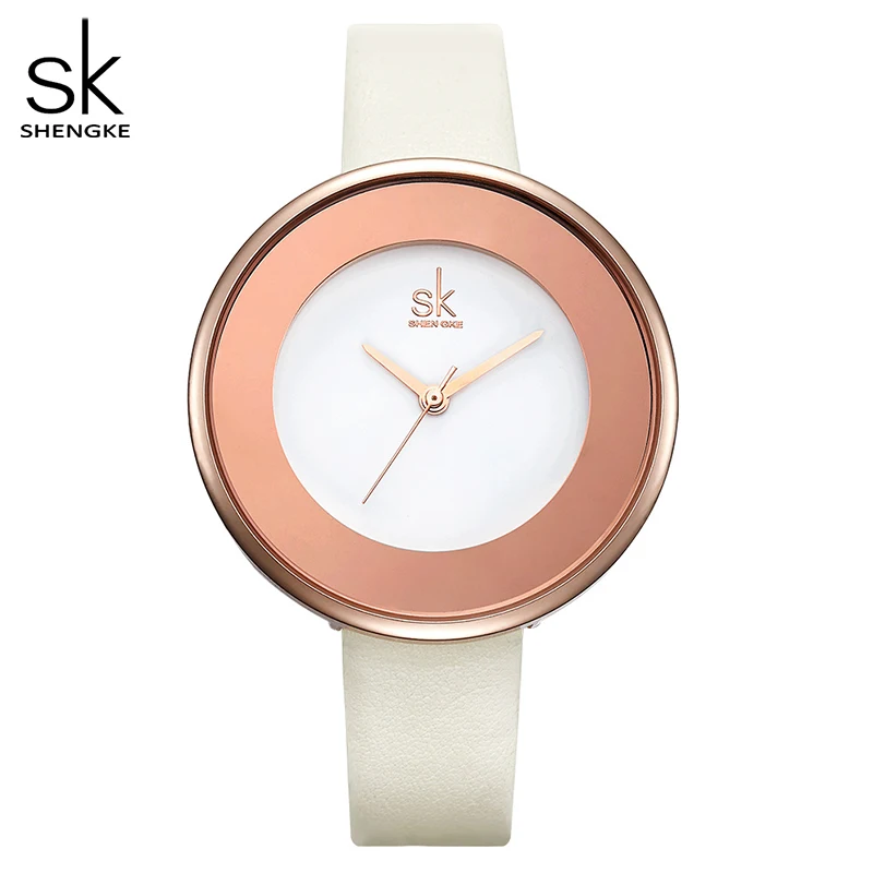 Часы наручные Shengke женские кварцевые, брендовые Роскошные модные ультра тонкие, с кожаным ремешком
