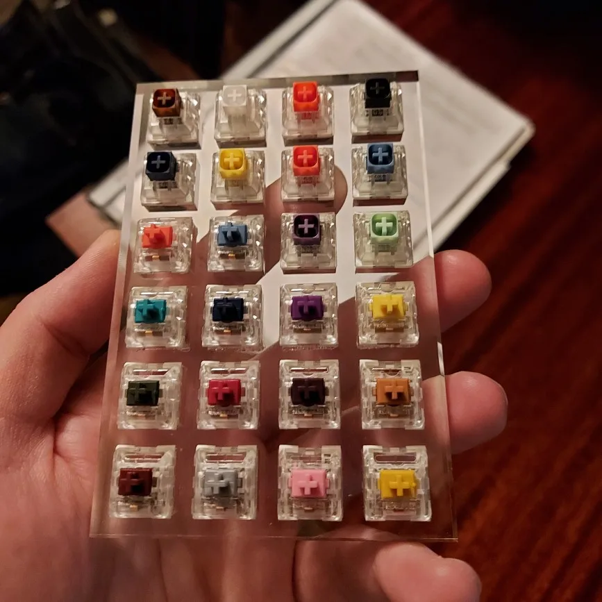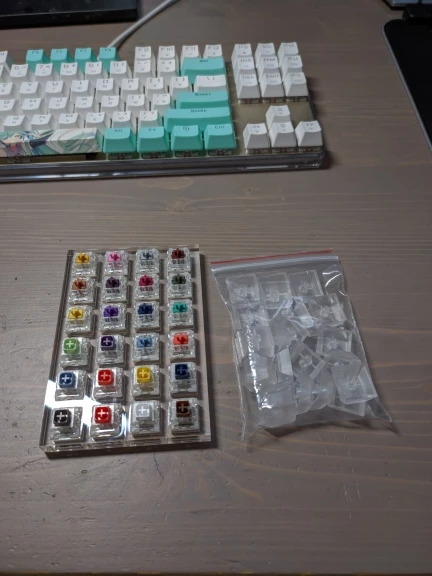 KPrepublic are the best. Great Kalih switch tester, very nice acrylic base, will definitely help you know what Kalih switches to buy for your next keyboard build. My tester came with 24 transparent blank keycaps, just as described.