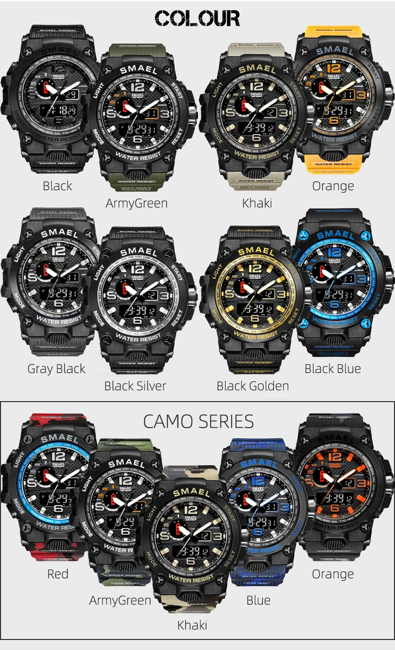 Часы SMAEL Мужские кварцевые аналоговые, модные спортивные в стиле милитари, 1545