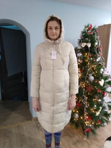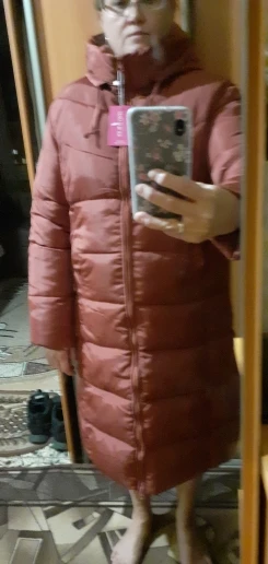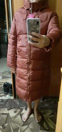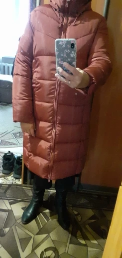Пальто пришло быстро. Цвет приятный. Размер соответствует (на мой 48 XXL), рост 160 - до середины голеней. Замки пластмассрвые. Манжет нет. Карманы мелковаты, а вот капюшон хороший, глубокий. Набито вроде равномерно. При - 10час стояла на детской плрщадке (тестила пальто), не замерзла. Но думаю - 20без ветра это предел. Крой практически прямой. Ничего лишнего. Простоватое.