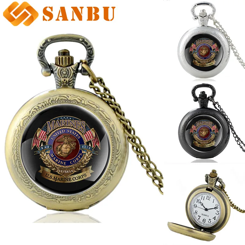 Винтажные модные серебряные карманные часы в стиле морской пехоты, ретро, для мужчин и женщин, США, кулон MC, ожерелье, античный подарок