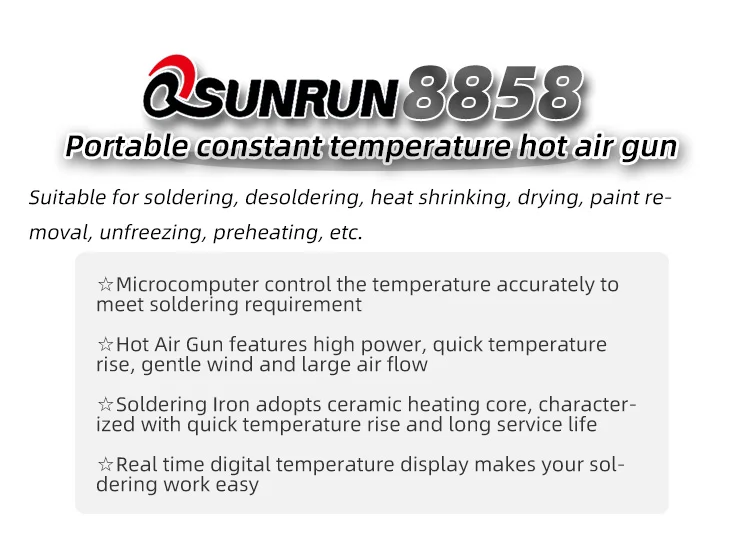 Портативная паяльная станция 110 В220 В 8858, пистолет горячего воздуха, интеллектуальный цифровой термостат с микрокомпьютером, инструмент для ремонта